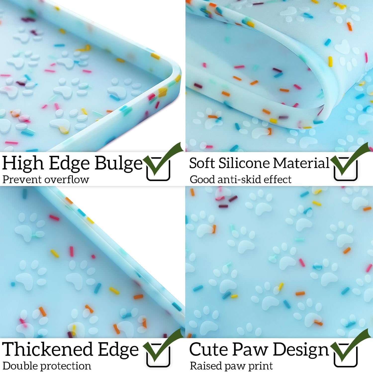 - Neat & Mess-Free: Raised edges with our dog placemat effectively prevent residue spills and splashes, letting mess keep away your floors. The thicker cat mat is perfect for keeping your home clean and tidy. Reduce cleaning time and pressure.