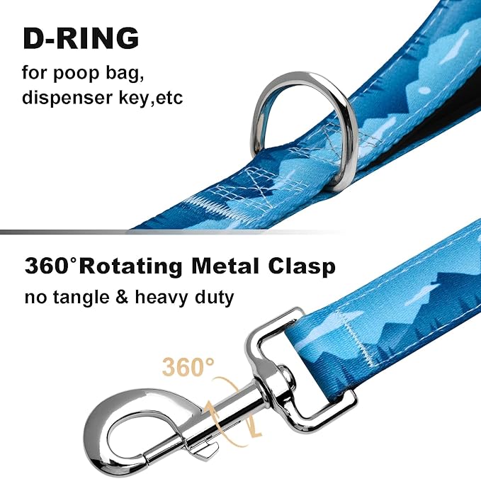 - 【Comfortable & Sturdy】The dog lead is made of high-density nylon webbing, which is comfortable and durable. D-ring near the handle is used to hang poop bags or other accessories