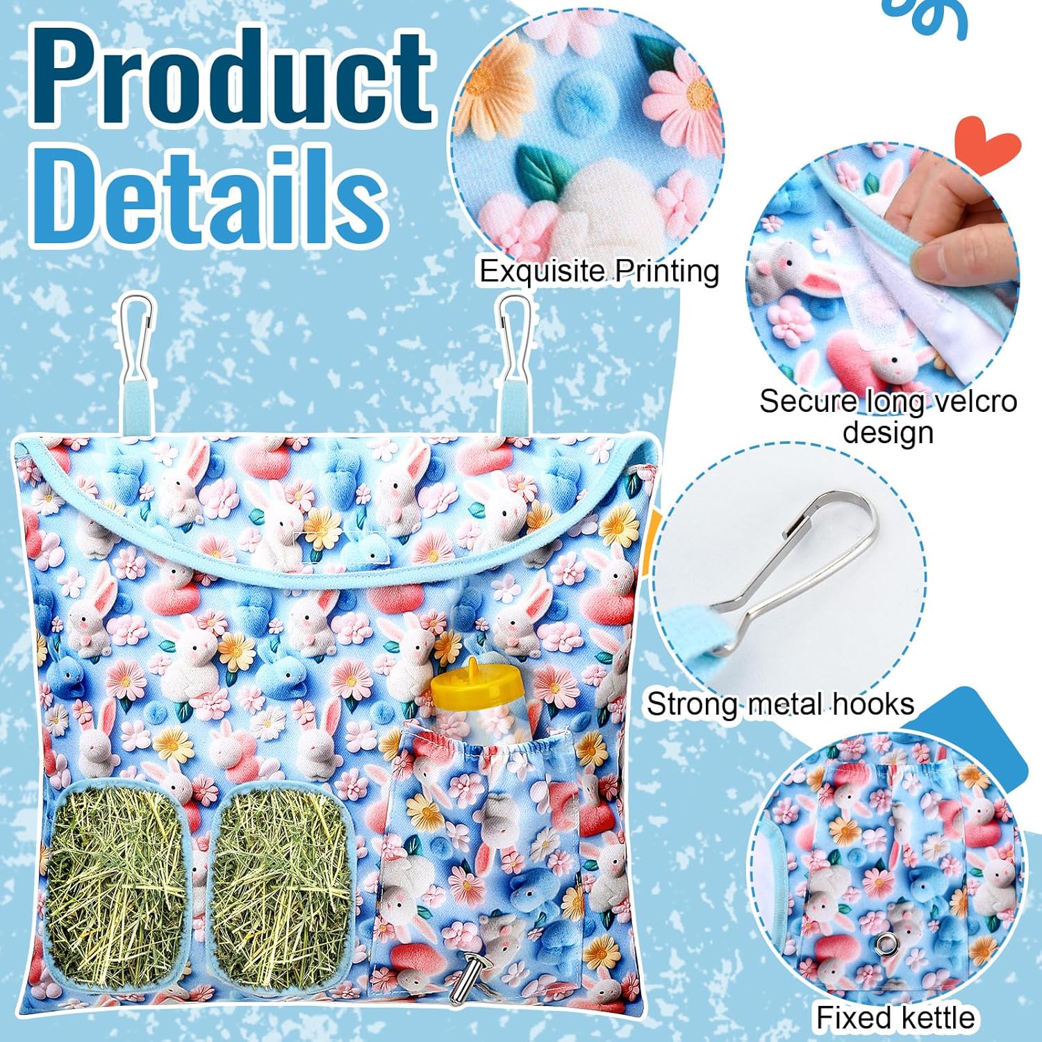 - Reliable Material: The hay bag for rabbits is made of reliable polyester cloth, which has good durability and not easy to wear and tear, ensuring that the rabbit hay feeder can be used for a long time,which not only prolongs the service life of the Guinea pig hay bag, but also helps to keep the hay dry and clean, thus promoting the happiness of pets