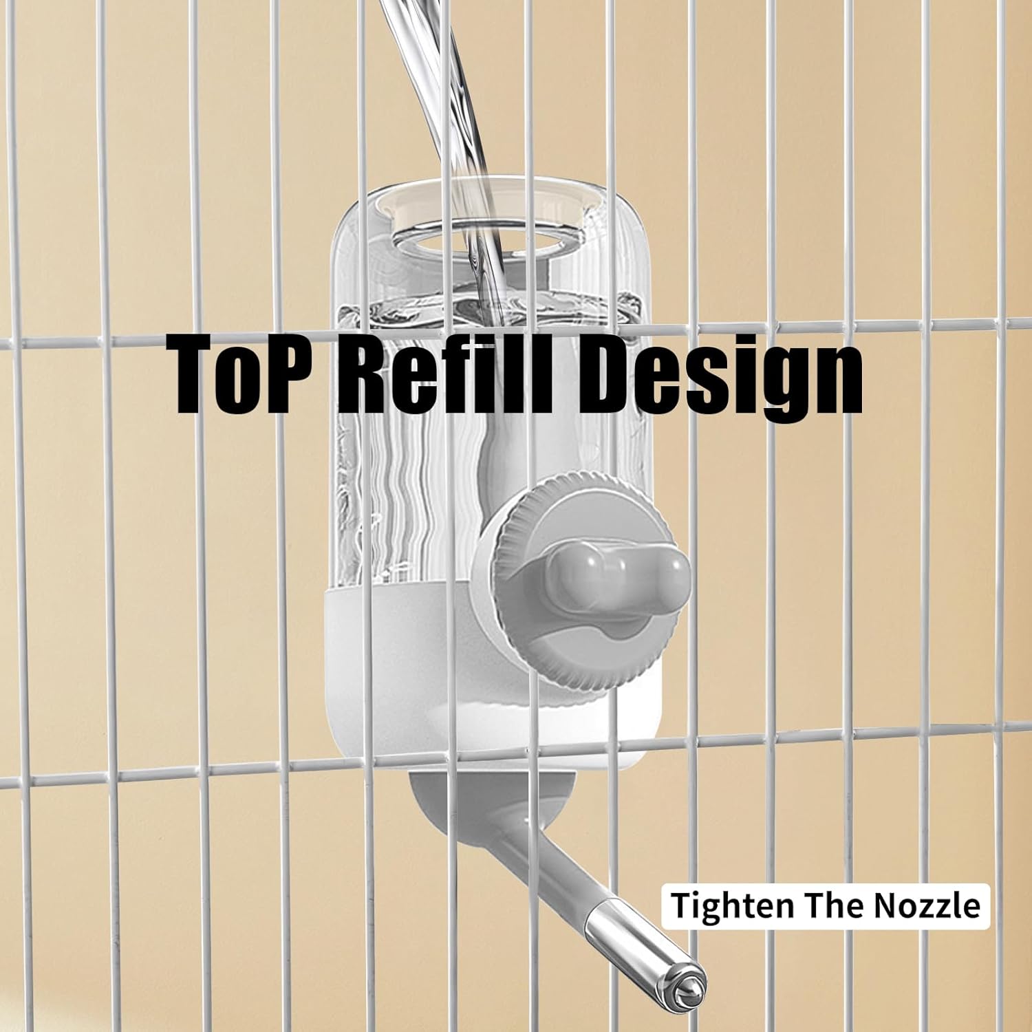 - Designed for Cage: This Rabbit Water Bottle is Designed for Cage .The water bottle features a tainless steel nozzle design and a hanging water bottle to control water flow and prevent spills. Fix the water bottle at the proper height of the cage, provides your pet with a more comfortable and hygienic drinking experience.