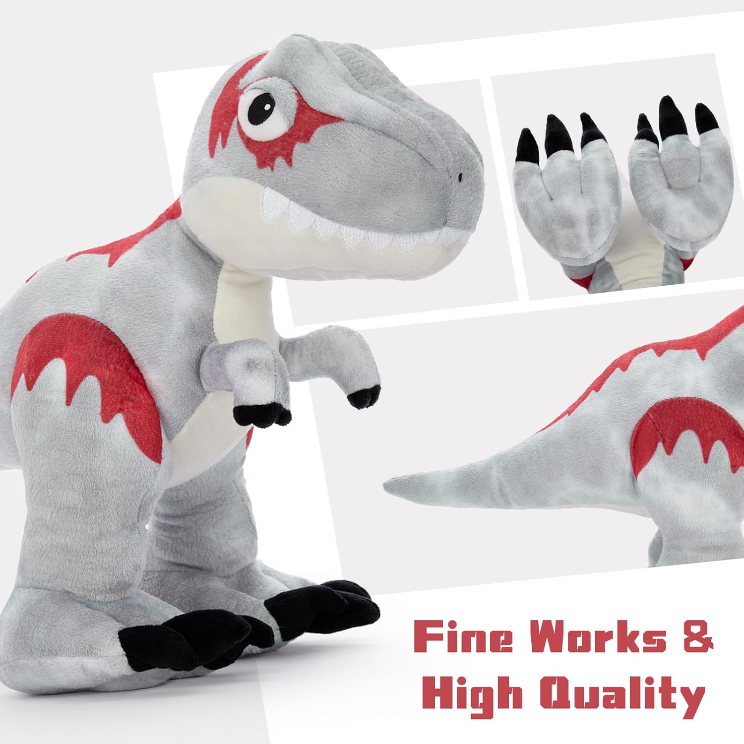 - ๐ชWeighted Feet for Standing : Weโve designed this big dino plush with weighted feet, so it can stand up on its own without toppling over. Itโs the perfect combination of cute and functional!