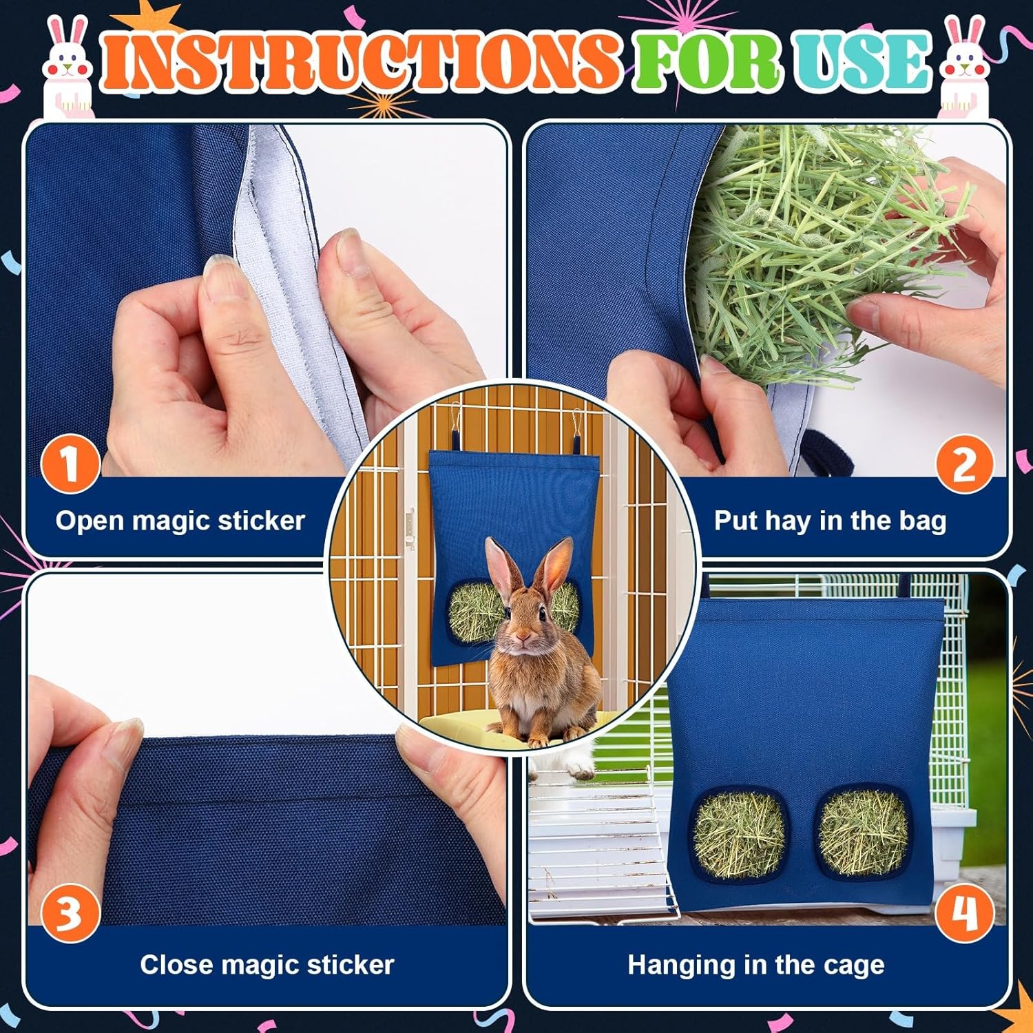 - Package Content: You will receive 2 hay bag for rabbits with different patterns, which will not only help keep the hay dry and clean, but also make your pet's life more colorful, thus keeping your pet happy