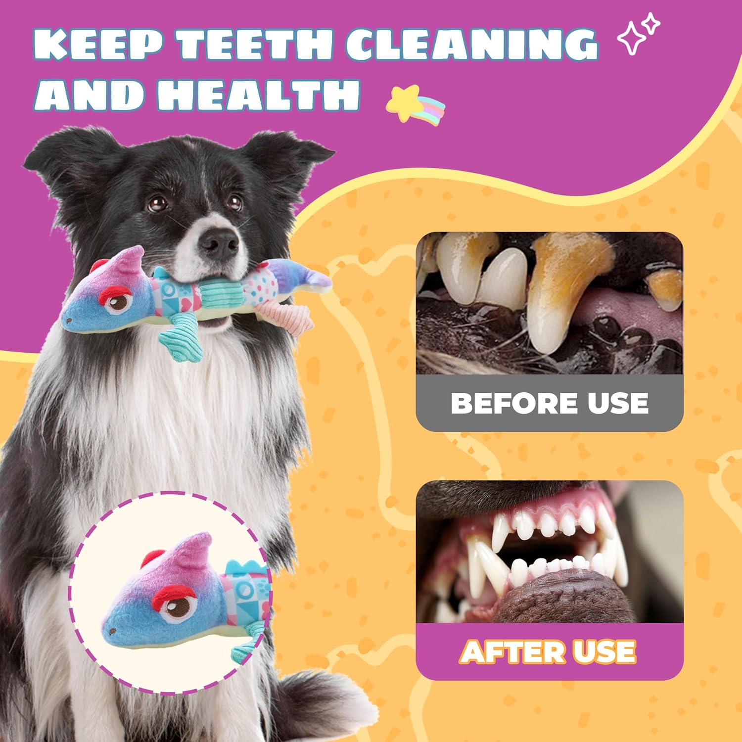 - 【Easy to Clean】This chameleon dog toy adopts a lightweight animal shape design, which is convenient to move and can be hand washed or machine washed for easy cleaning.