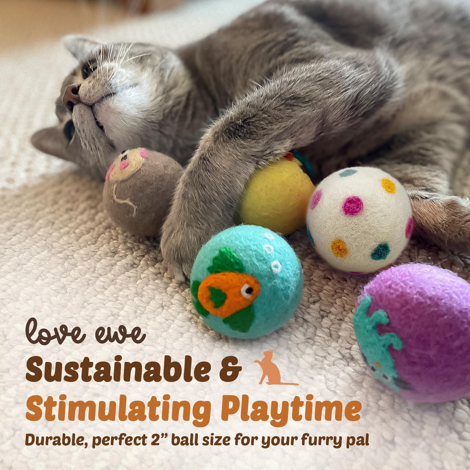 - HANDMADE & DURABLE: Our felt cat toy balls are hand-felted with 100% premium wool, making them more durable than traditional factory-made toys. They are carefully crafted to ensure they won't fall apart easily during play. These wool toys for cats and dogs are sustainable, cruelty-free, and made by women in underprivileged communities under ethical working conditions. They're Azo-free, lead-free, and safe for both your pet and the planet.