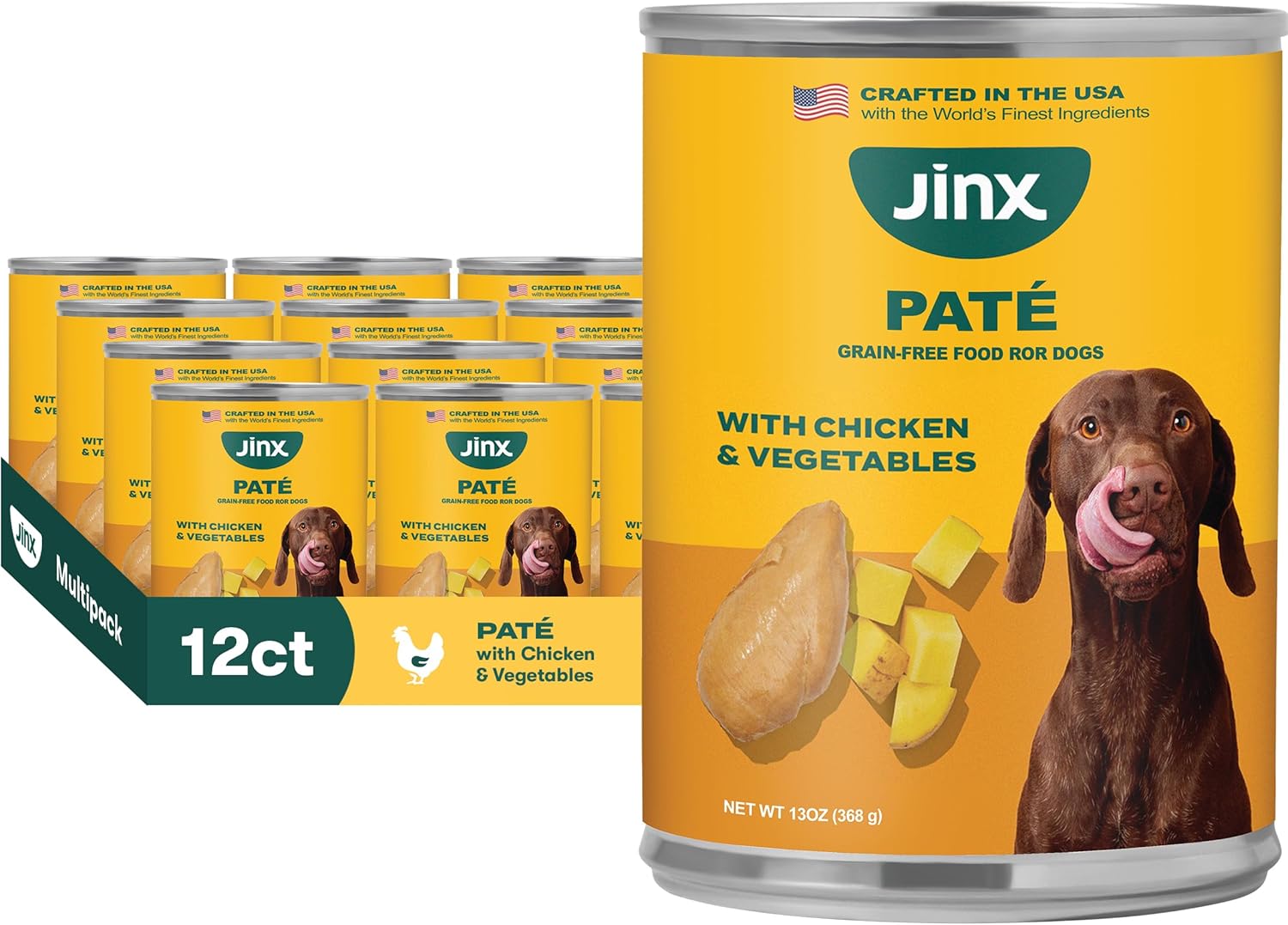 Jinx Premium Wet Dog Food Cans - Chicken & Vegetables Pate - Grain-Free Canned Dog Food Pate & Topper with Real Ingredients & No Fillers - All Life Stages, Breeds & Sizes - 12-Pack, 13 Oz