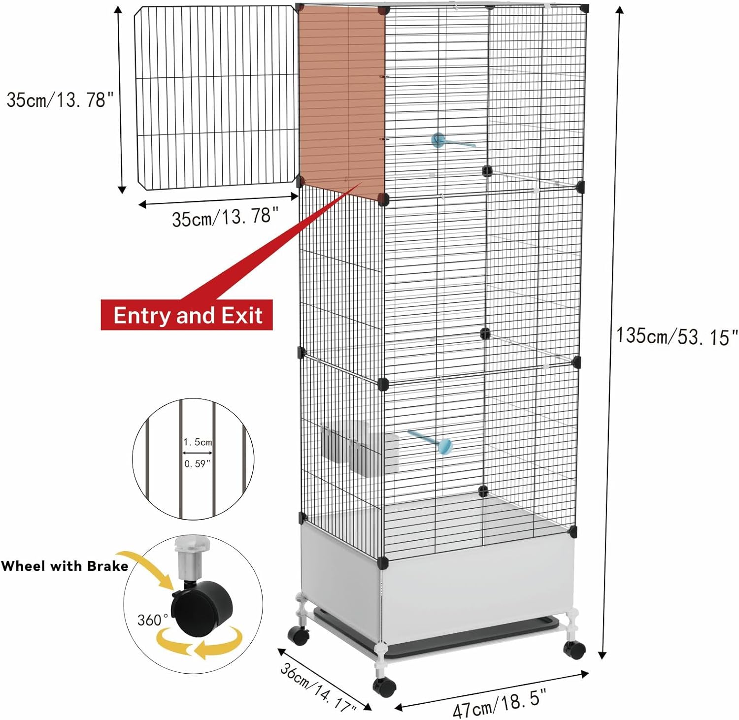 - [Extra Large Bird Cage]: Our pet cage measures 14.17" × 18.5" × 53.15", enlarged to offer larger space; this cage is suitable for large, medium and small birds such as parakeets, parrots, conures, cockatiels, canaries, etc. The 0.59" bar spacing offers safety, making it a perfect home for your feathered friend.