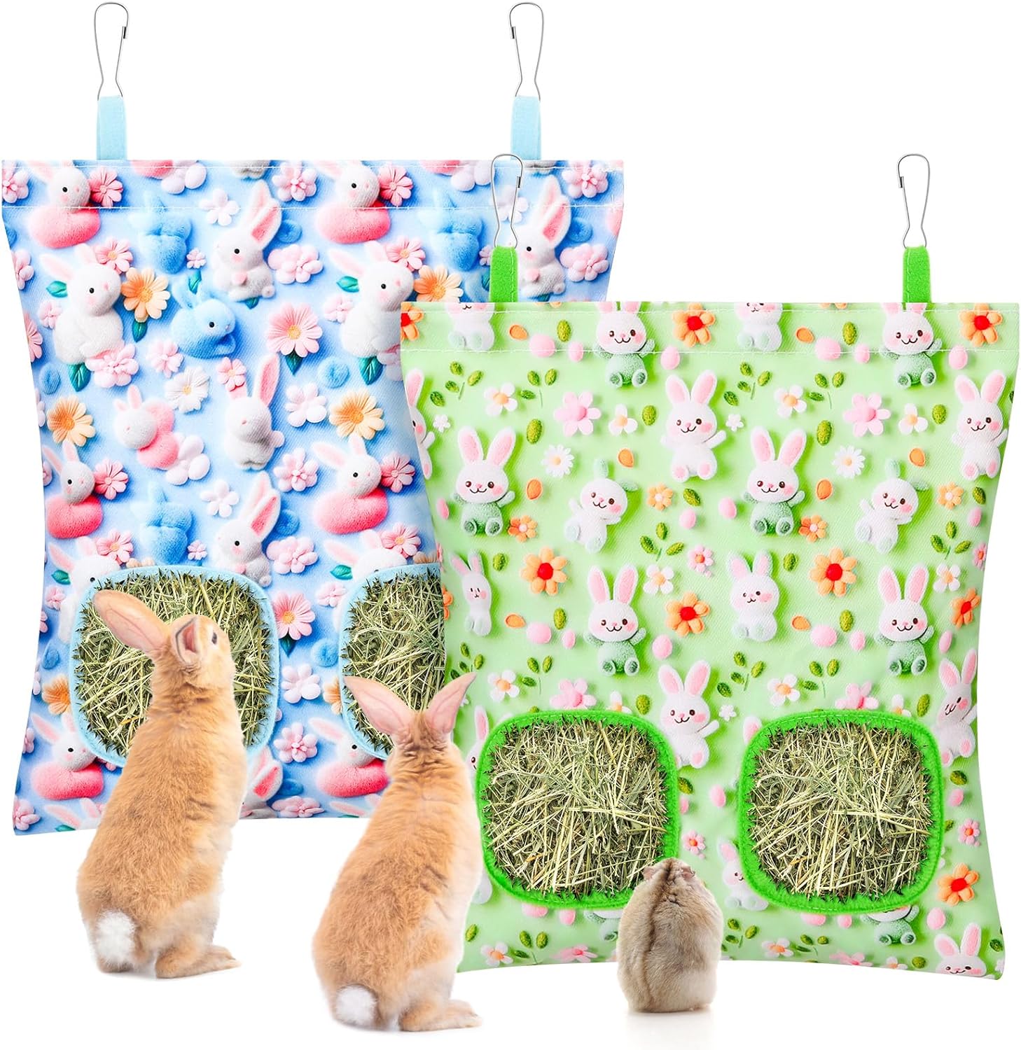 UPINS 2 Pack Rabbit Hay Feeder, Guinea Pig Hay Bag for Guinea Pig Cage Hay Feeder for Bunny Rabbits Animals Small Pets and Chinchillas Hamsters