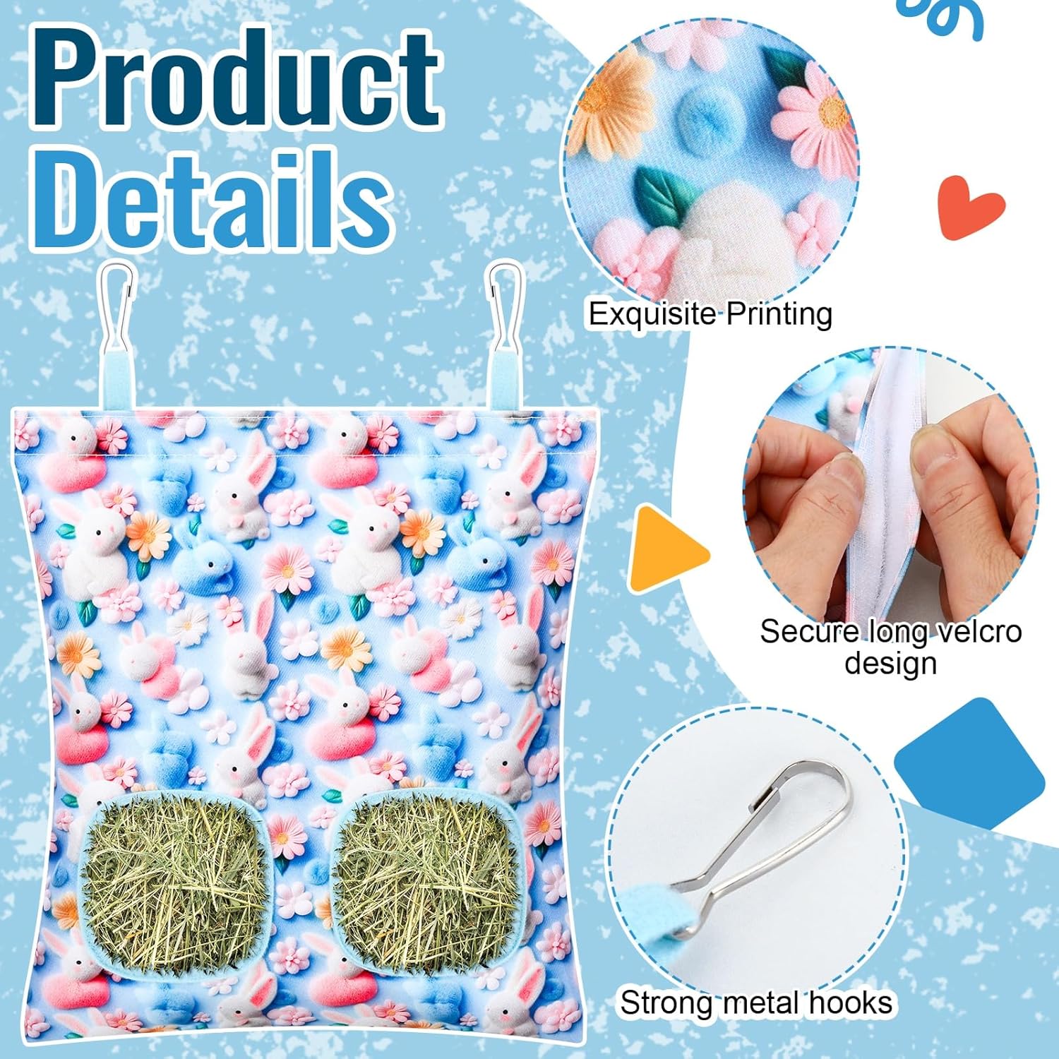 - Easy to Use: The guinea pig hay bag is easy to open and take. You only need to open the magic tape of guinea pig hay feeder, and then you can add hay. In addition, the bunny hay feeder is light, foldable and easy to carry and store, which is convenient for you to provide hay for your pet anytime and anywhere, making feeding easier