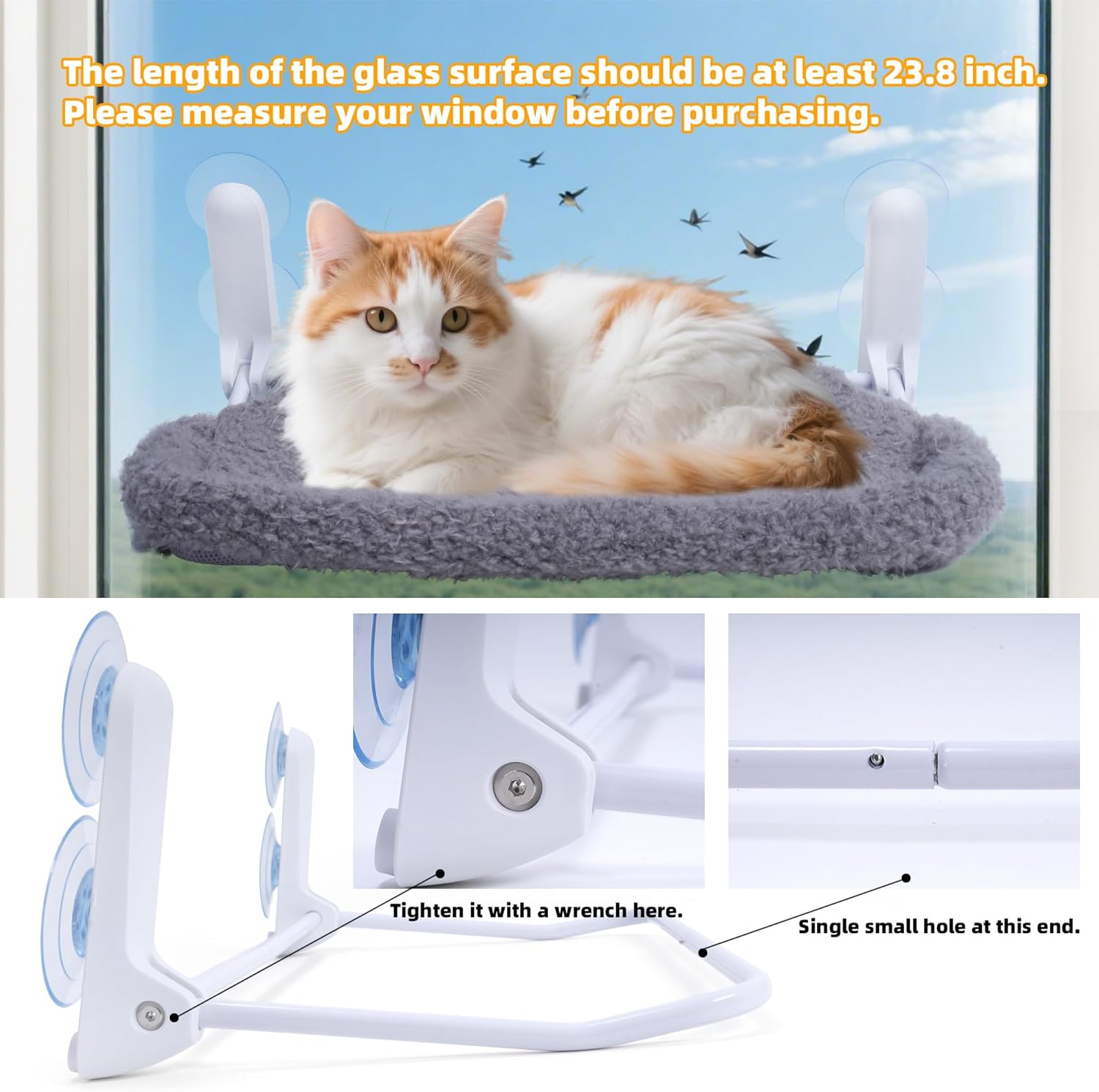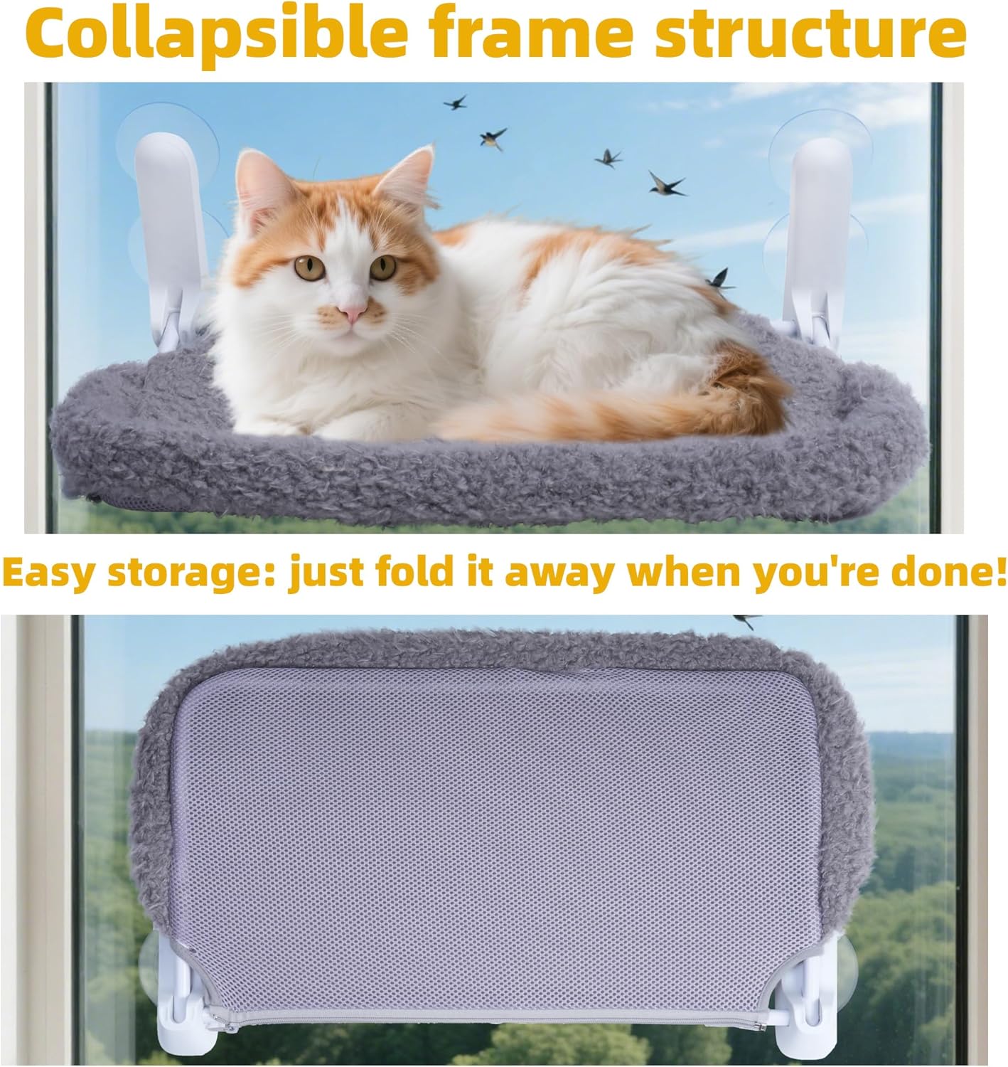 YUNIQUE Cat Window Perch with Cushion Rim, Upturned Edge Bracket, Portable Wall Hammock for Indoor Cat, Grey