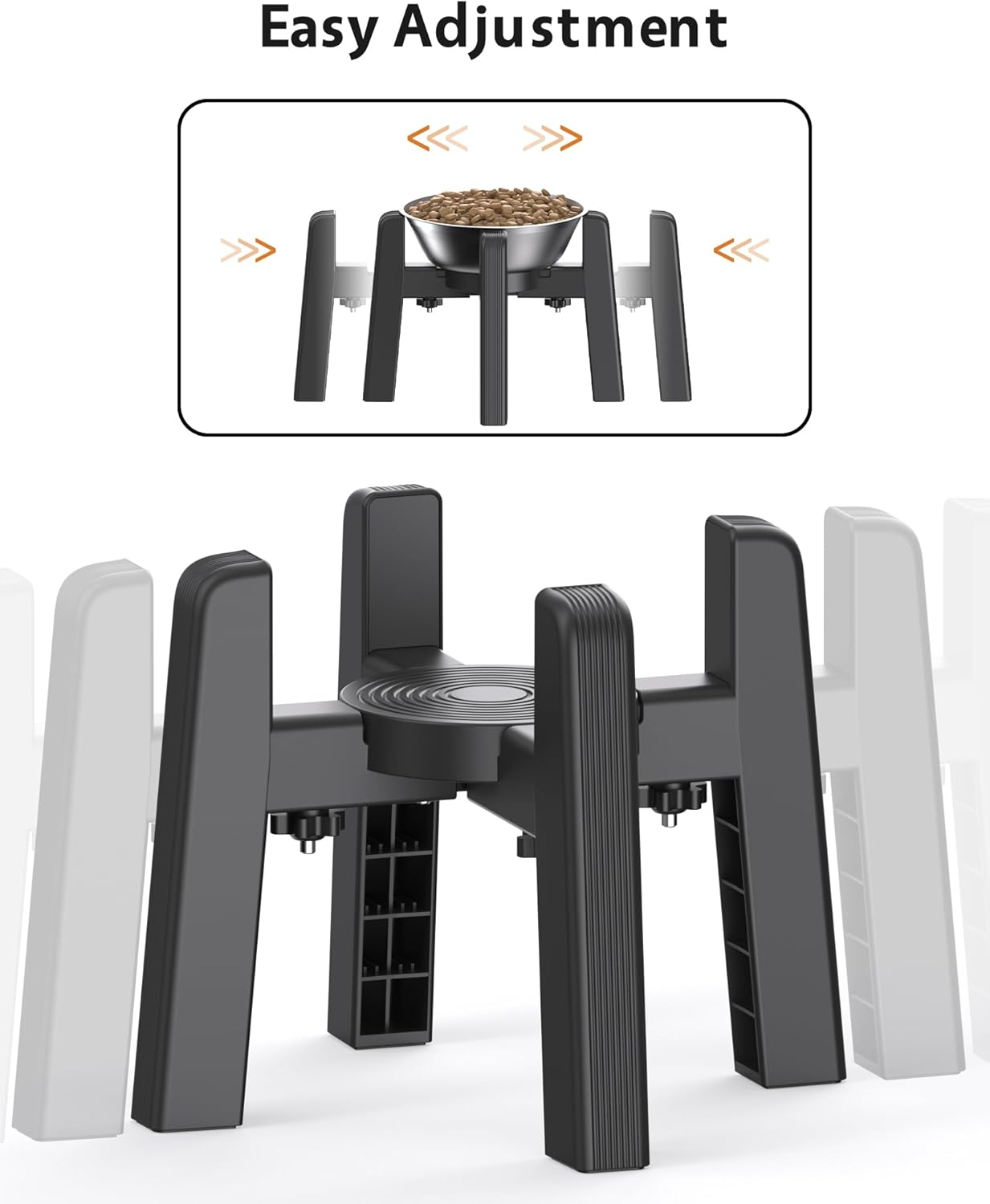CZPET Dog Bowl Stand, 51 oz Large Capacity Raised Elevated Dog Food/Water Stainless Steel Feeder, Size Adjustable & Anti-Slip Stand for Medium Dogs (2 Pack)