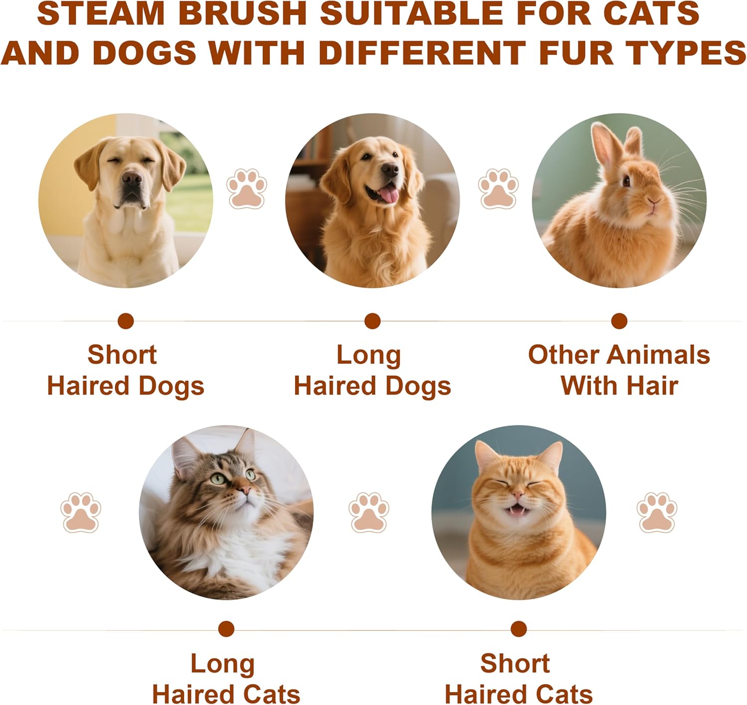 - Universal for All Coat Types: Suitable for all long/short-haired cats & dogs, any size. Our grooming brush—perfect for cat brushes for indoor cats and dog brush for short/long haired dogs—features 30dB quiet operation to reduce pet stress. Delivers gentle mist (not heated steam) – add warm water/fragrance for a customized, calming groom.