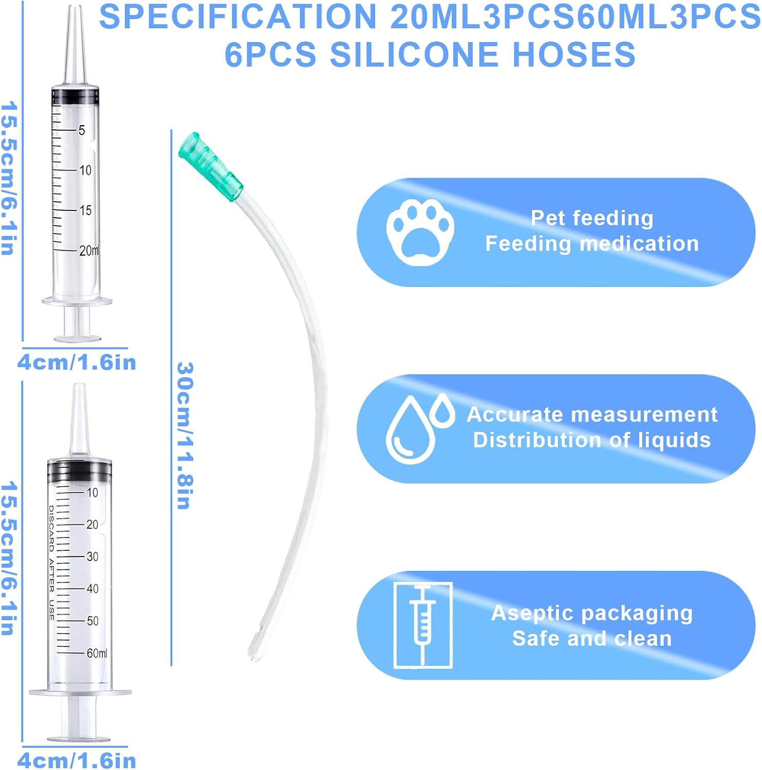 - 【Package Includes】3pc 20ml feeding syrine, 3 pc 60ml feeding syringe, 6 pcs 30cm/11.8in extension injection catheters.