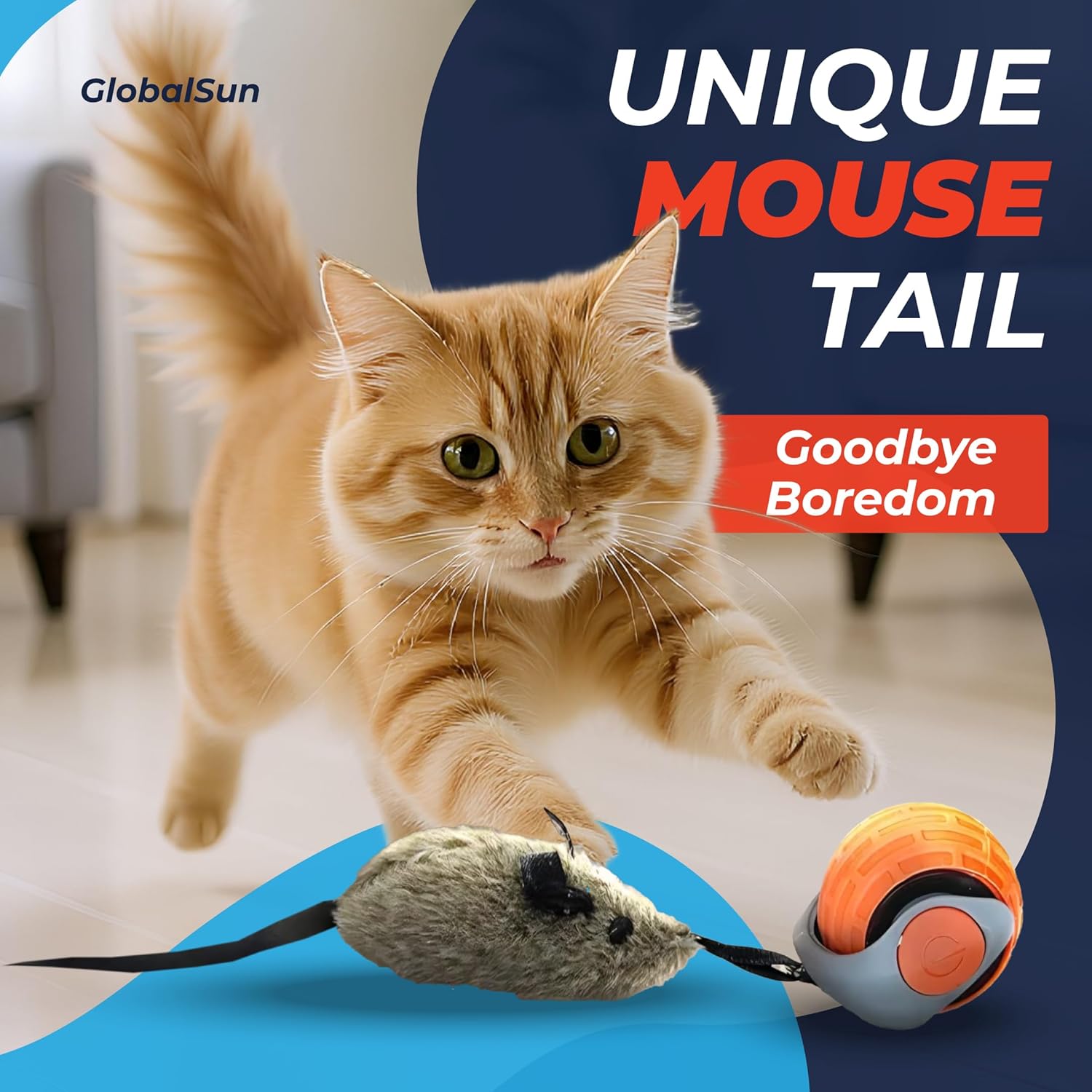 - MOTION-ACTIVATED SELF-MOVING CAT TOY – GlobalSun Speedy Tail 2.0 springs to life at the slightest touch, encouraging cats to chase, pounce, and play. This automatic rolling cat toy keeps indoor cats entertained and active even when you’re busy or away.