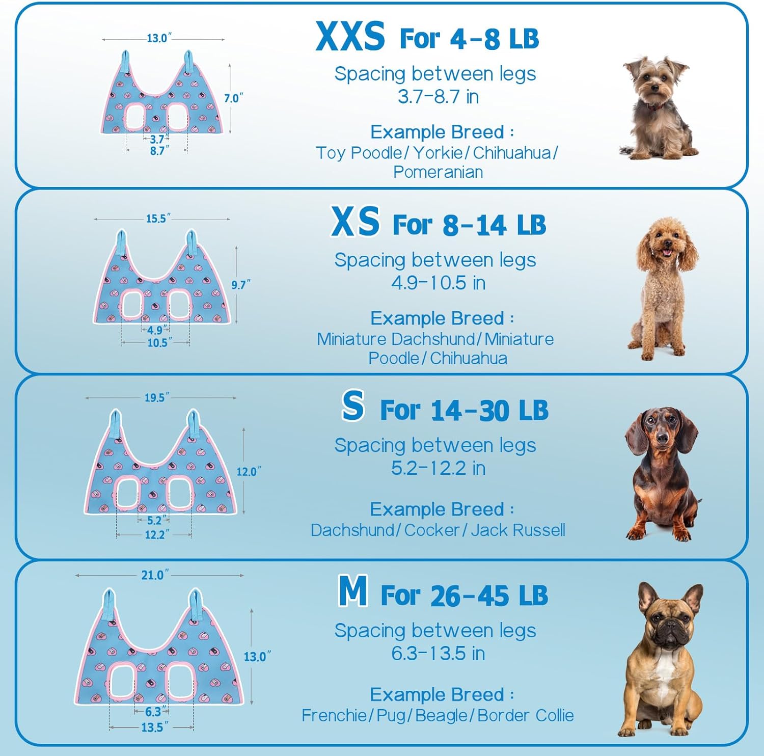 - Size : S( Max 30 Lb:Leg space: 5.2"-12.2")