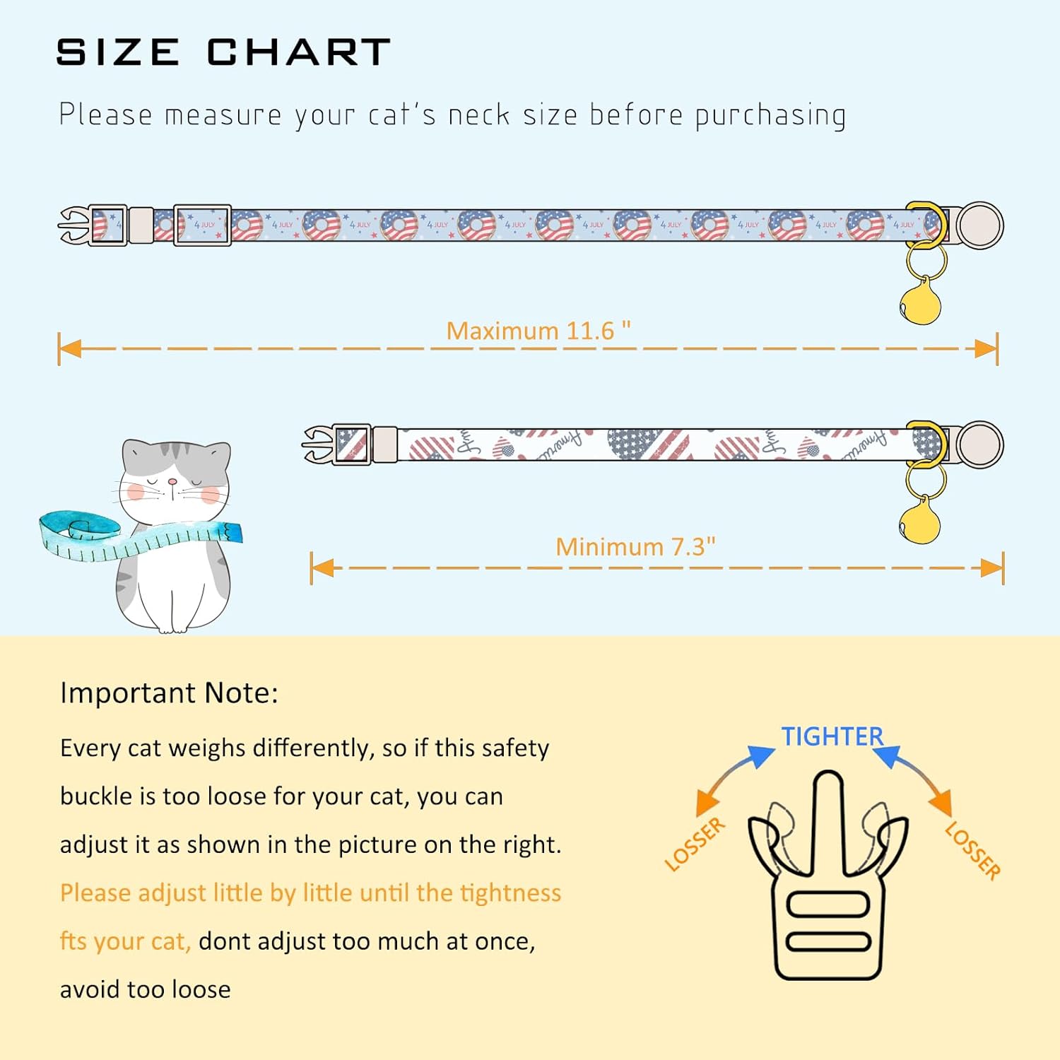 - PATRIOTIC DESIGN: Light blue and white cat collar set featuring American flag-themed donuts pattern with 'I Love USA' text, perfect for Independence Day and year-round patriotic display