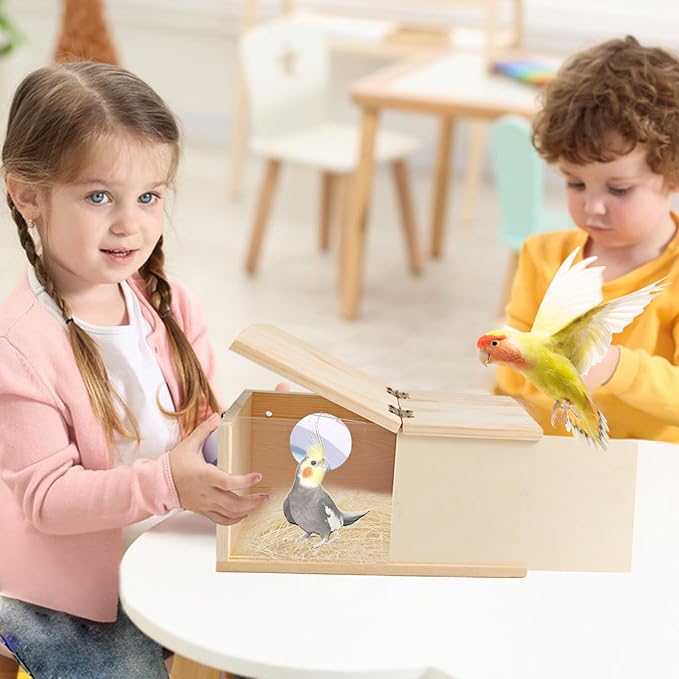 - Multifunctional Bird Box:Bird Nest Box is a warm place,parrot live to rest & play.Nesting box for parakeets help train nesting function of bird.Comfortable & safe parrot breeding box give bird sense of security,encourage pet to reproduce