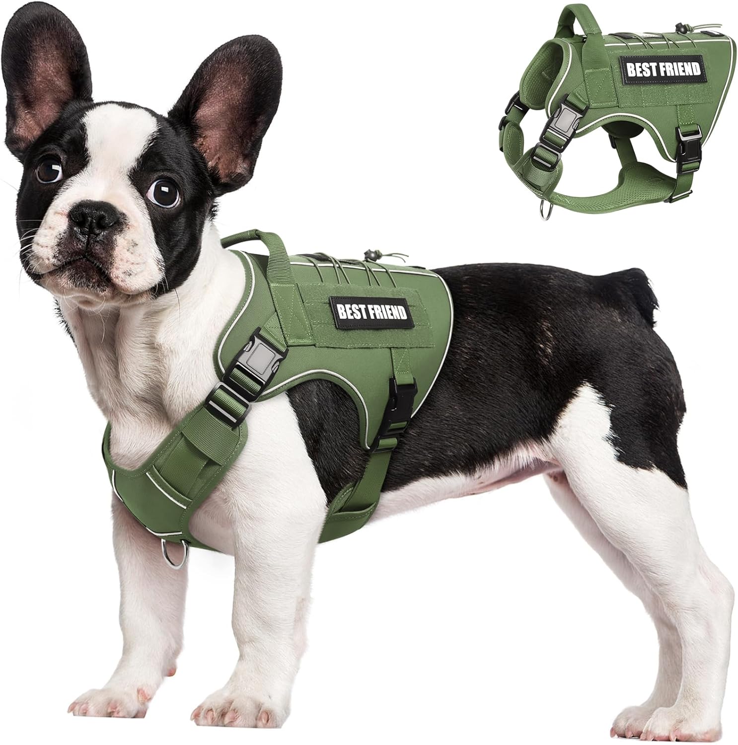 Tactical Dog Harness Small Sized Dog,No Pull Military Dog Vest with Handle,Reflective Heavy Duty Pet Harness for Walking Hiking Training Green S