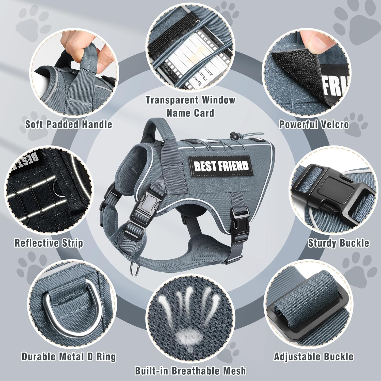 Tactical Dog Harness for Large Dogs,No Pull Military Dog Vest with Handle,Reflective Heavy Duty Pet Harness for K9 Working Walking Hiking Training Gray XL