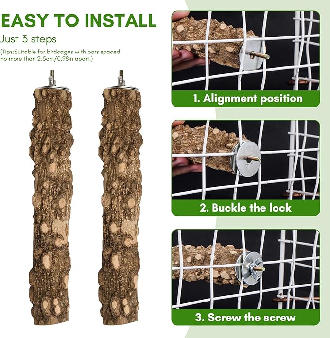 - Natural Wood: Each perch in the EELLAO bird perch set is made from natural wood, cleaned and dried to ensure safety for your pets. Since they're crafted from natural materials, each perch will have its own unique shape and size.