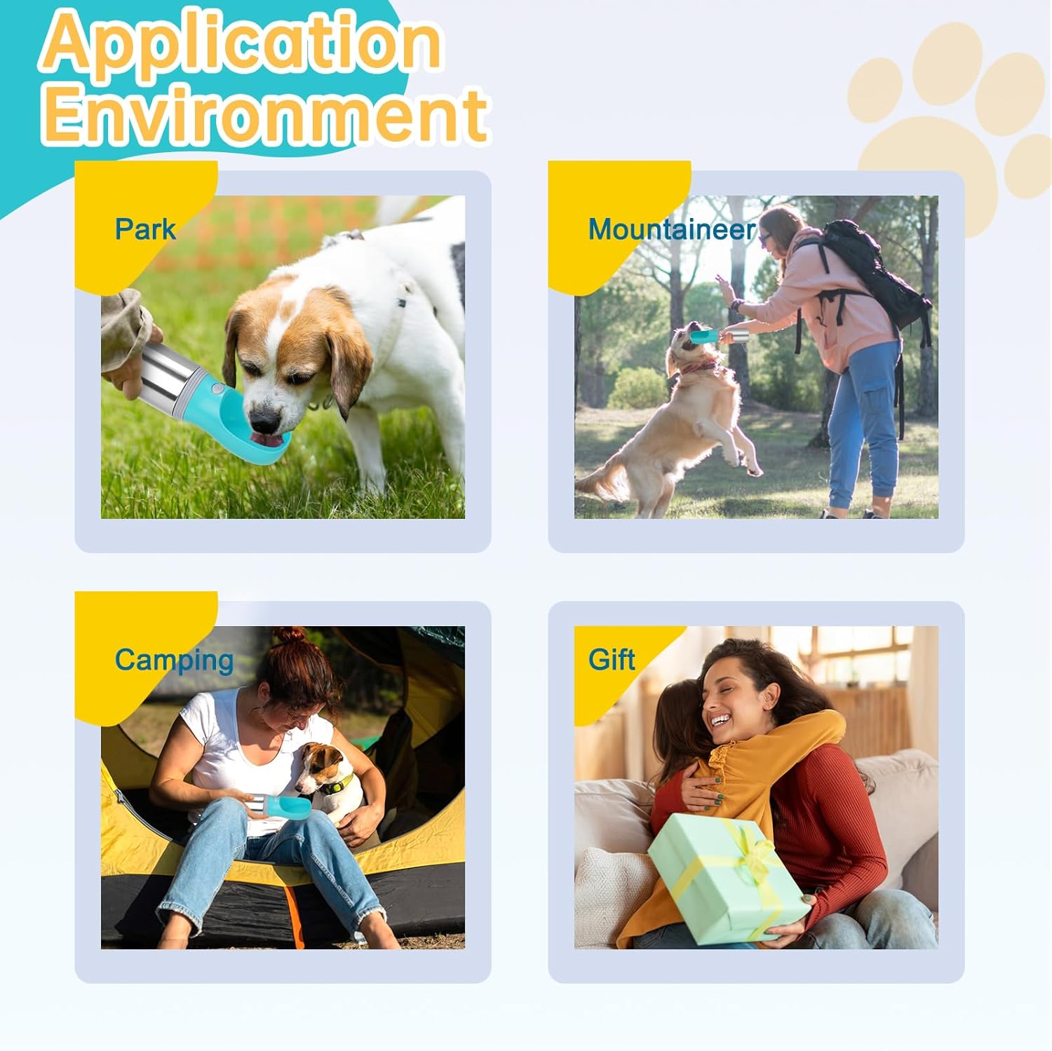 - Best Travel Companion: A portable dog water bottle is a must-have item for pet owners on the go! The unique design is both user-friendly and dog-friendly. It's perfect for long-time drives, road trips, hikes, walks, and outdoor activities.