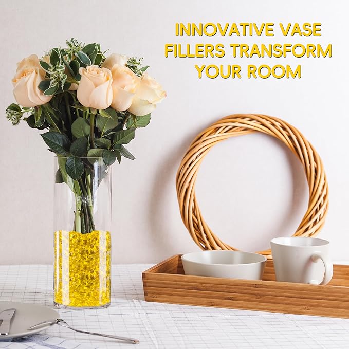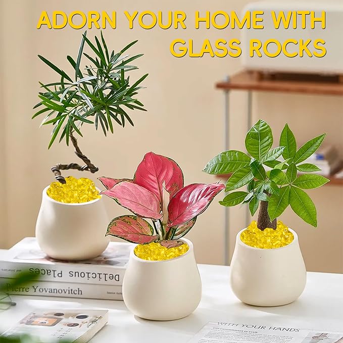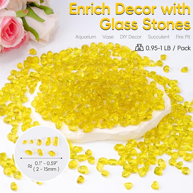 Meschett Colorful Glass Stones, 1 LB Fish Tank Gravel, Small Irregular Rainbow Aquarium Gravel for Aquarium Decorations and Turtle Tank, Sea Glass Beads Crystals for Fish Bowl, Vase Filler,Yellow