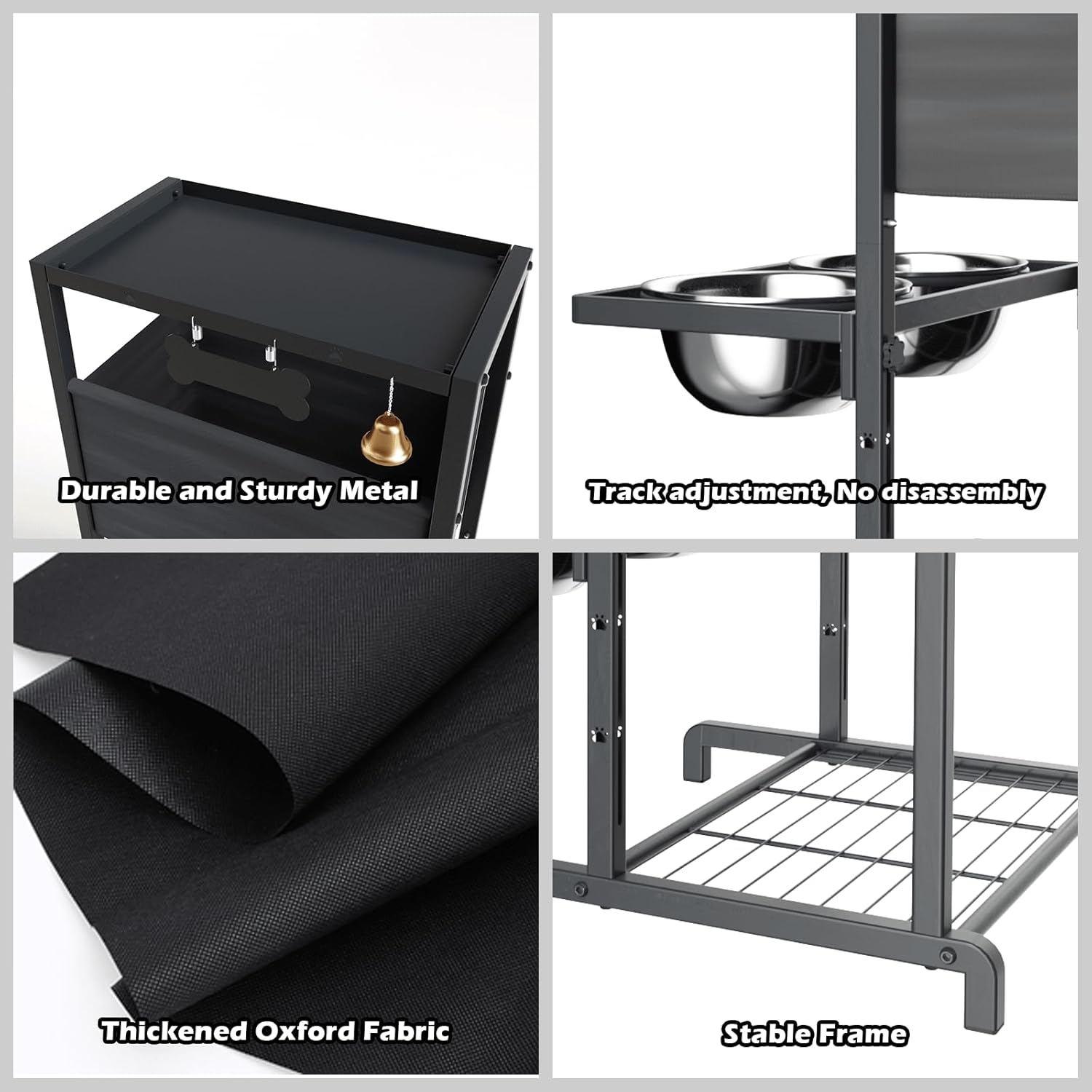 - 【STURDY AND DURABLE】The feeder is made of high-quality metal, the thick metal frame provides strong support and stability to prevent shaking or tipping. While the dog toy box is made of durable oxford fabric, which is not easy to tear and ensures long-term use.