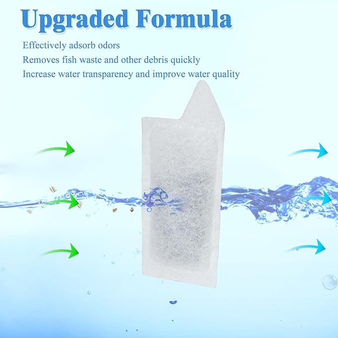 - Upgraded Formula: Dual-sided poly-fiber cotton can effectively removes fish waste and other debris quickly; The natural coconut shell activated carbon in the inner layer can effectively adsorb odors, increase water transparency and improve water quality