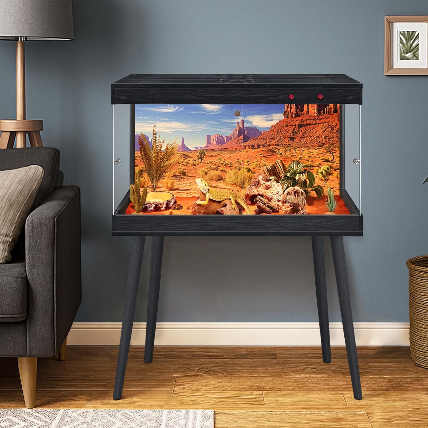 - 【Premium Build & Materials】Expertly crafted with natural wood and tempered glass, this terrarium features a waterproof coating for long-lasting use and a clean, modern aesthetic. The acrylic bottom panel provides reliable moisture resistance, protecting the enclosure from spills and substrate buildup. Its spacious interior allows your reptile to explore, bask, and hide comfortably—encouraging natural behaviors and supporting overall wellness. Available in 4 size options, each unit includes 4 legs; see image 3 for detailed dimensions.