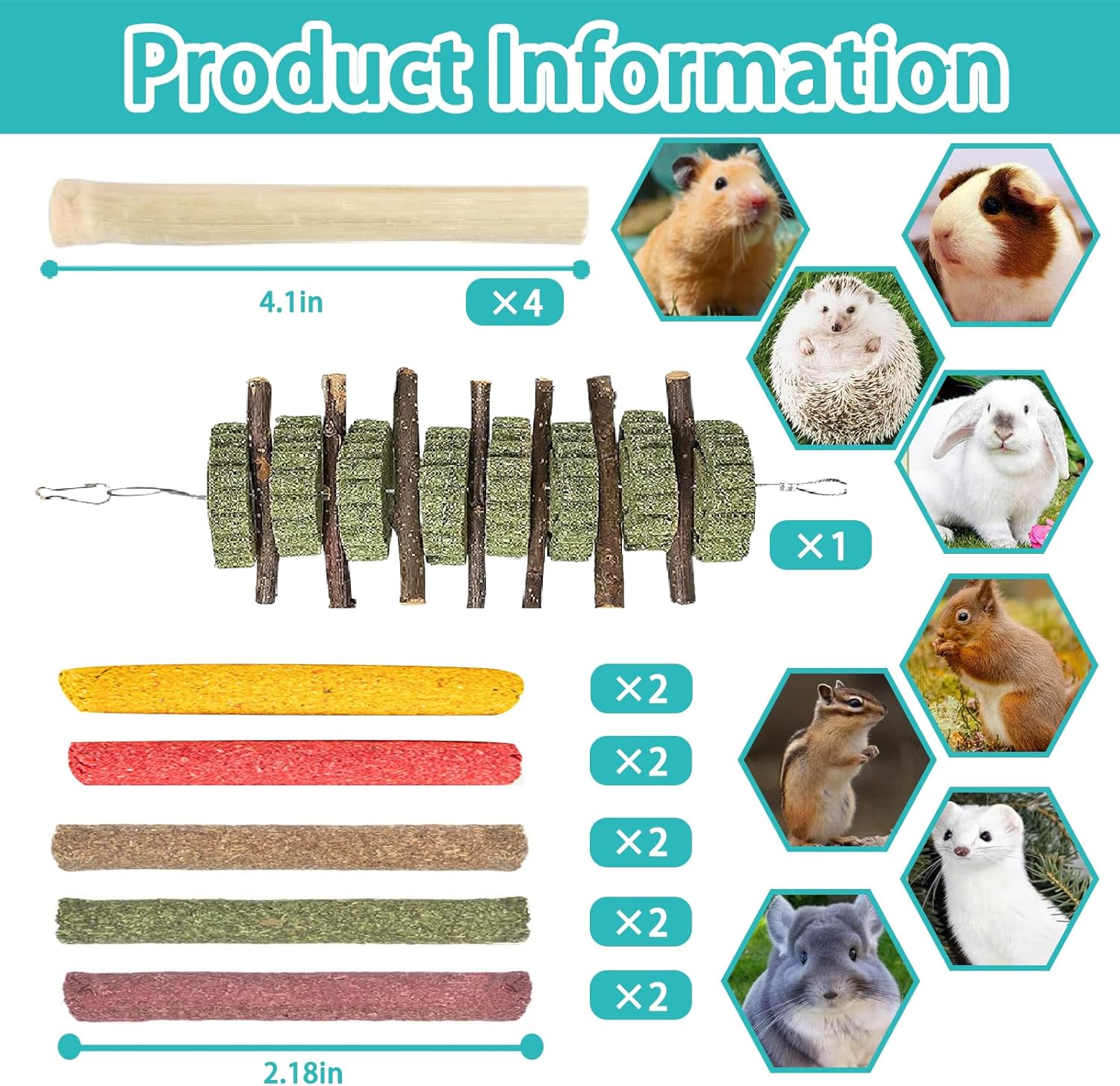 - 【Perfect Gift】: The rabbit chew toys for teeth are suitable for various small pets such as guinea pigs, hamsters, and chinchillas. Chewing toys not only maintain the health of pets' teeth and bodies, but also serve as an effective way for pets to relieve anxiety and stress, contributing to their psychological well-being. They are an ideal choice for pet owners when selecting toys for their pets.