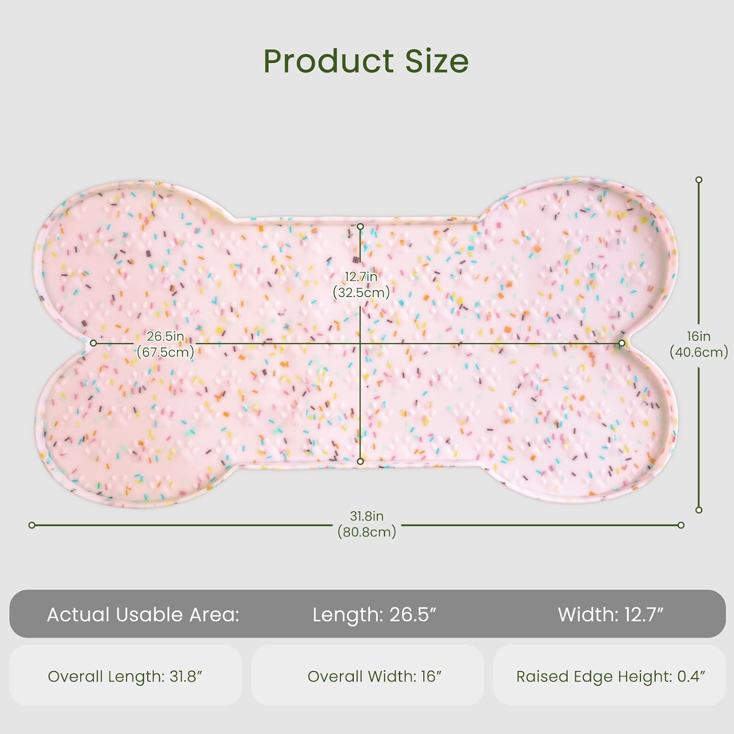 - Health Silicone Material - This pet bowl mat is non-toxic, and non-allergenic, protecting the health and safety of your pet's feeding. 31.8" x 16" holds two extra large bowls, perfect for large-sized dogs and cats to enjoy a delicious meal tray.
