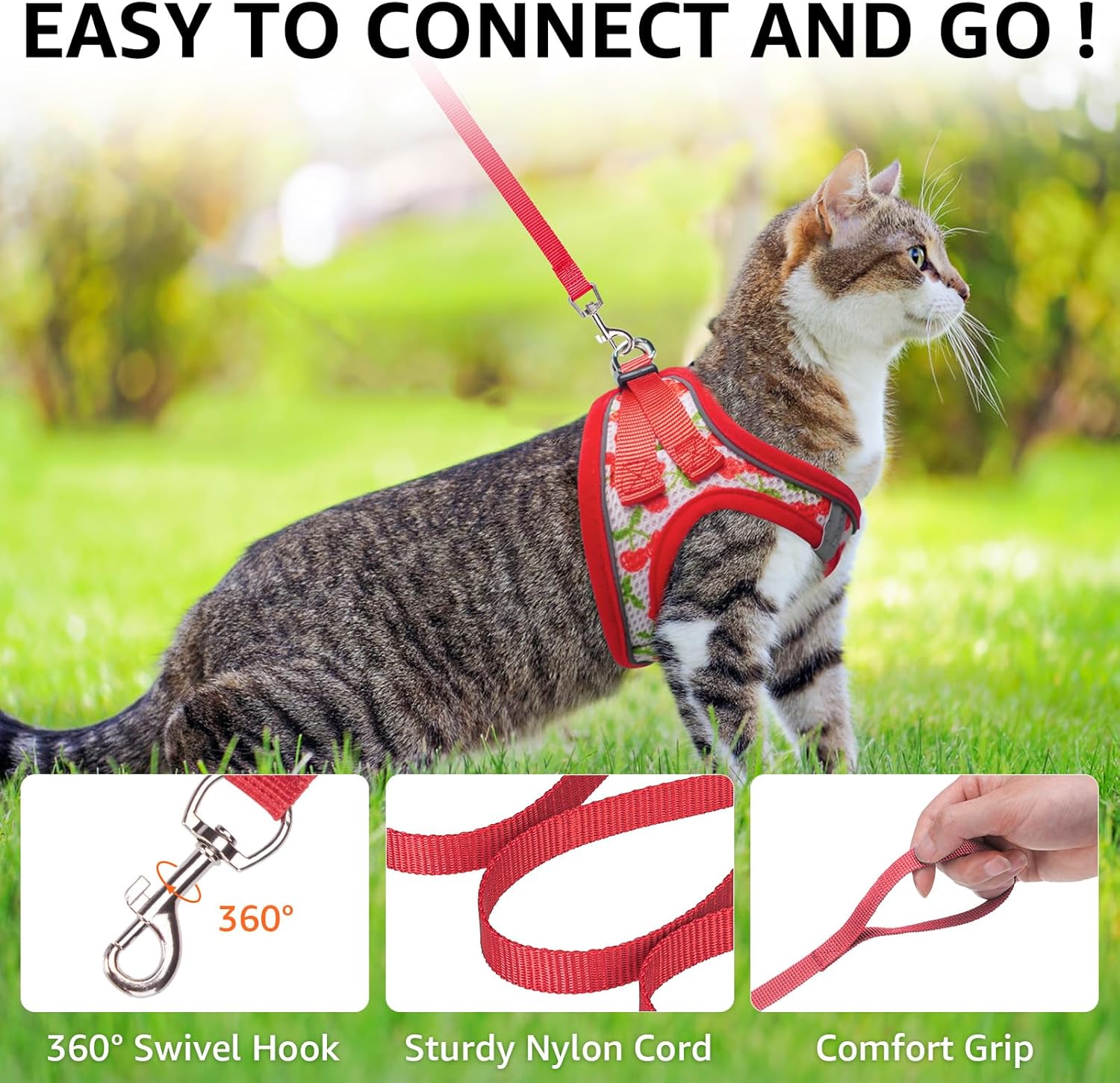 - COMFORTABLE & STYLISH MESH DESIGN: Made with soft, breathable mesh, this lightweight cat harness keeps your kitten cool. Choose from fun prints like Cherry, Pink Leopard, Khaki Leopard, or Duck