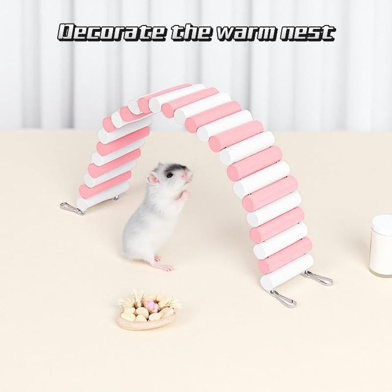 2Pcs Hamster Swing Toy, Soft Climbing Ladder, Wooden Arch Bridge, Hideaway Fence Tunnel, Landscape Supplies Climbing Ladder (Pink White)
