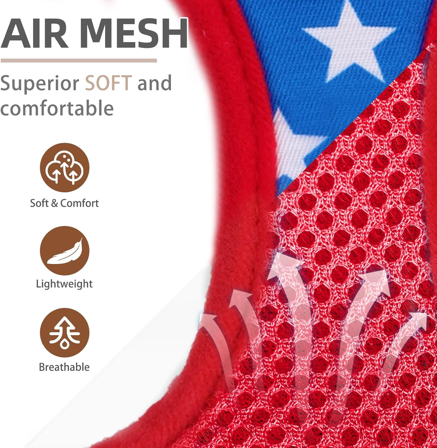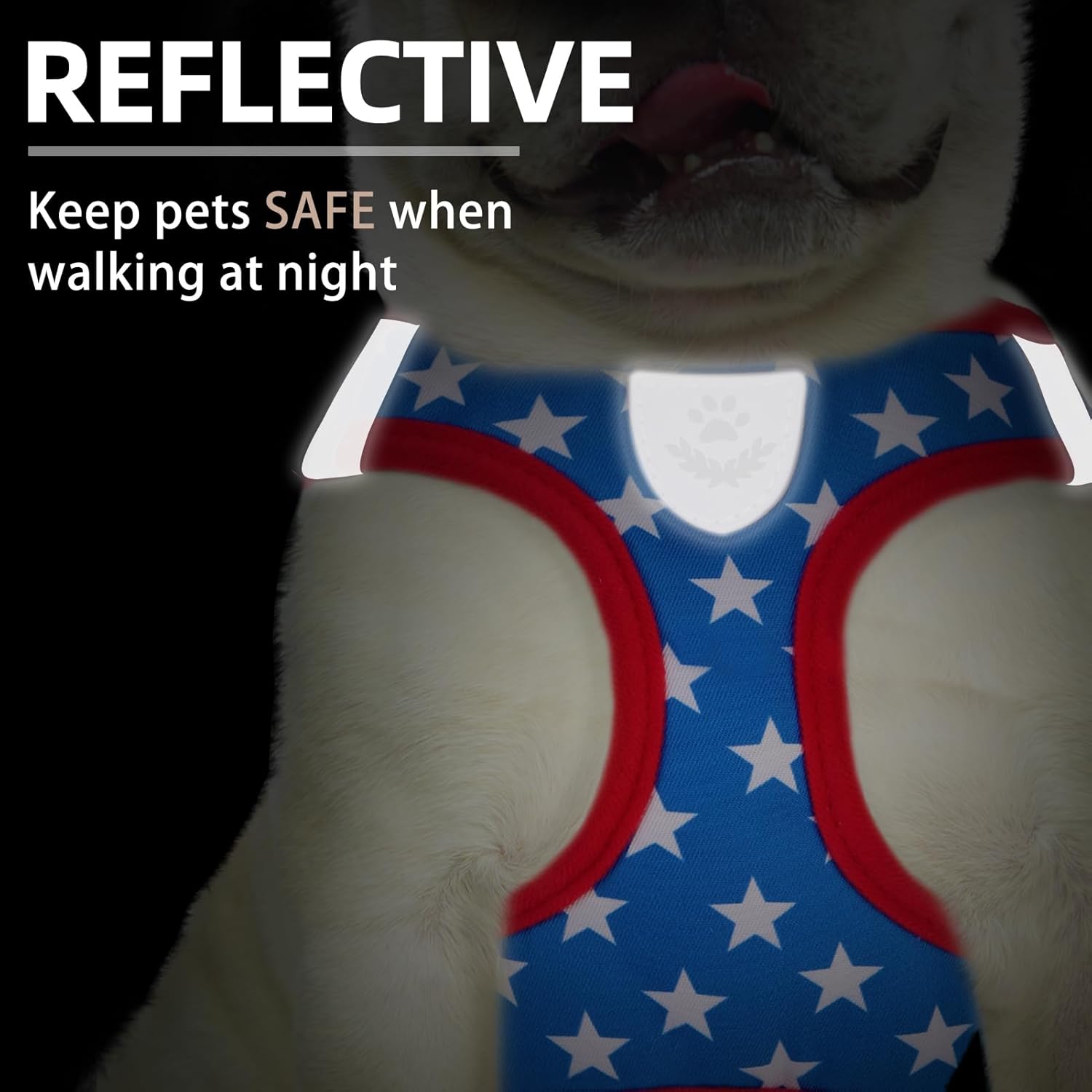 - COMFORTABLE MATERIAL, DAILY WALKING, FOUR SEASONS WEARING: - The harness is made of durable polyester, and it's adopted with an air-mesh design. The whole harness is very soft, lightweight, and breathable. Even if your dog wears it all day, he won't feel any discomfort. For daily walking or running, it is a very easy thing to do. Besides, this is a four seasons harness, it keeps the dog cool on hot days and keeps the dog warm on cold days