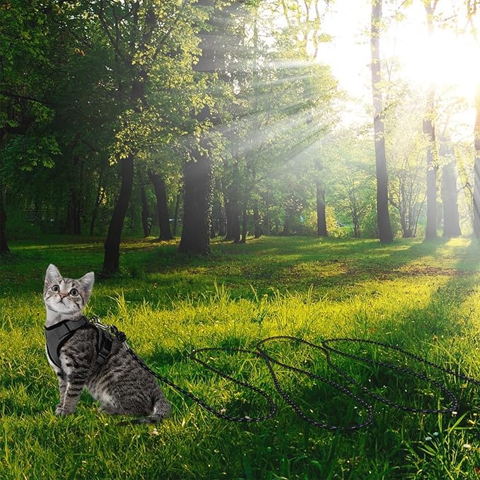 - [Reflective design] Our cat leash has a large number of highly reflective cat ropes that can protect your kittens well at night by improving their visibility. Makes you safe and eye-catching when walking late at night. In order to increase safety at night, reflective cat and dog lines will ensure to improve the visibility of your pet at night.