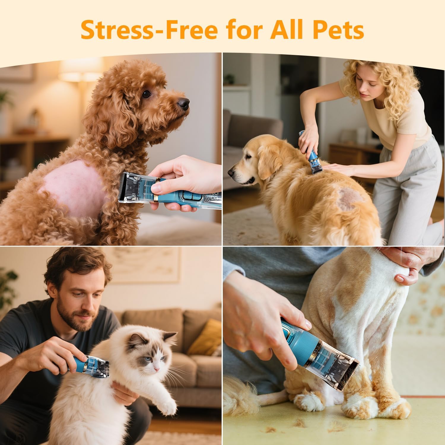 - ✅ 1. 【Professional-Grade Cutting Performance】:"Lab-Engineered Titanium Blades with 7200RPM 3-speed motor effortlessly slice through thick and matted coats (Huskies, Goldens, Poodles). 300% more efficient than standard clippers, providing smooth, pull-free grooming that pets tolerate and owners love."