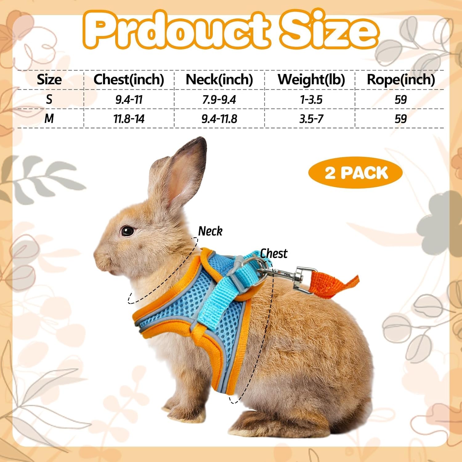 PINVNBY 2 Pack Bunny Hsrness and Leash Set Adjustable Rabbit Harness with Reflective Strips Double Buckle Pet Vest Eescape Proof for Small Rabbit Kitten Puppy Walks Accessories (Orange Blue, M)