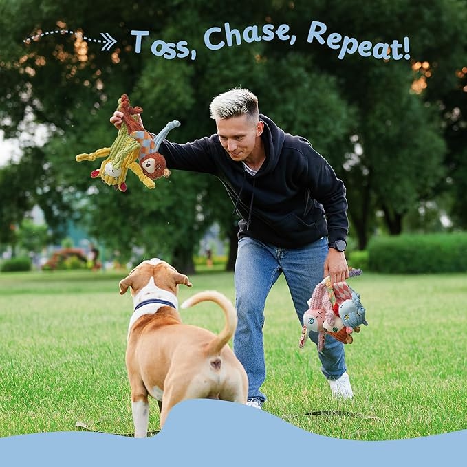 - HOURS OF FUN: This toy is perfect for fetch games and training rewards, strengthening the emotional bond between you and your beloved dogs. When you’re away, the squeaky toy helps alleviate their anxiety and stress, and keep them busy, reducing destructive behavior.