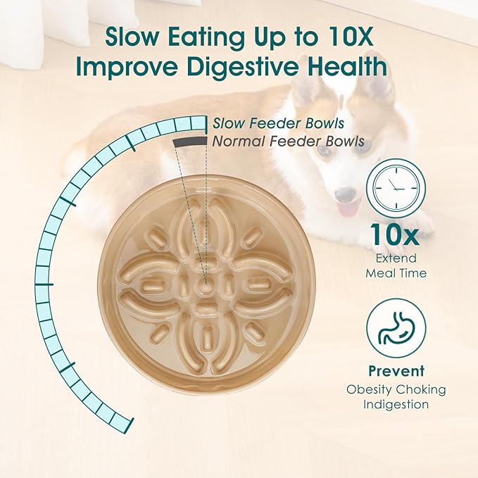 - 【Elegant & Functional Design】 This beautifully crafted ceramic dog bowl features a stunning floral pattern with a raised flower centerpiece—not just for aesthetics, but to slow down your dog’s eating by up to 10x compared to regular bowls!