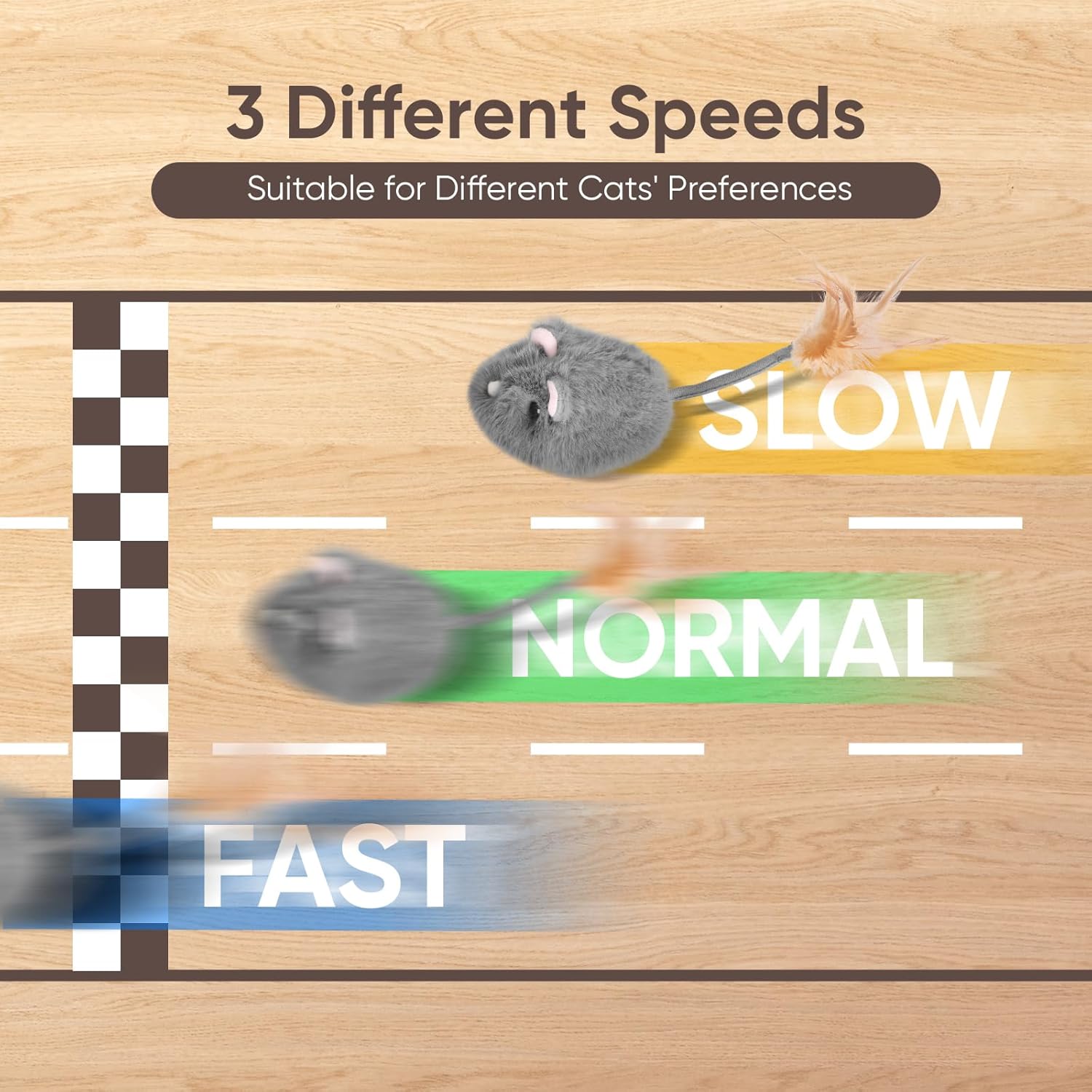 - 【3 Adjustable Speeds For All Ages】Customize play with Fast, Medium, or Slow speeds in Remote Mode. Ideal for curious kittens (3+ months, start with Slow!) or energetic adult cats (crank up Fast!) - matches their energy level and keeps them mentally stimulated through dynamic interaction.When switching to fast mode,the simulated mouse may move in circles because of the relatively high speed.