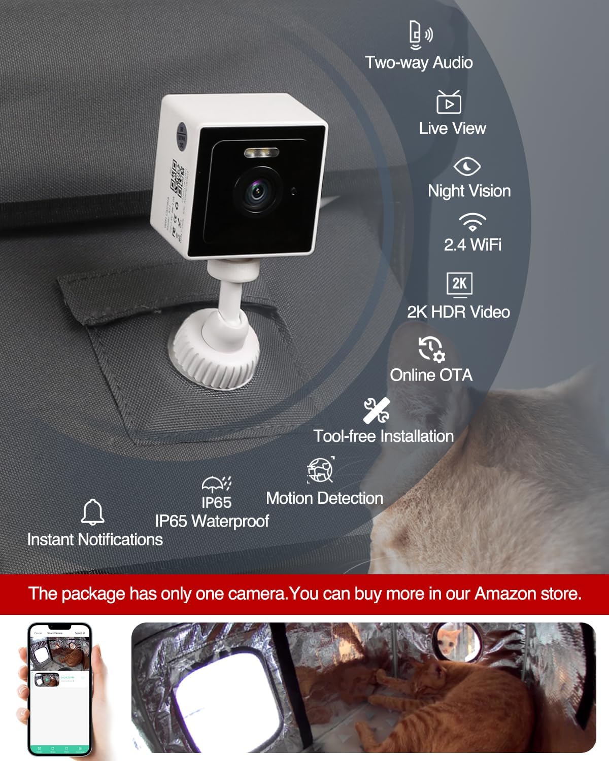 - ๐๐๐ฆ๐๐ซ๐ ๐๐ฎ๐ฉ๐ฉ๐จ๐ซ๐ญ-(๐๐ก๐ ๐ฉ๐๐๐ค๐๐ ๐ ๐ก๐๐ฌ ๐จ๐ง๐ฅ๐ฒ ๐จ๐ง๐ ๐๐๐ฆ๐๐ซ๐.๐๐จ๐ฎ ๐๐๐ง ๐๐ฎ๐ฒ ๐ฆ๐จ๐ซ๐ ๐ข๐ง ๐จ๐ฎ๐ซ ๐๐ฆ๐๐ณ๐จ๐ง ๐ฌ๐ญ๐จ๐ซ๐.)Our heated cat house has built-in two support points for cameras both inside and outside.So even when you're โโaway/outโโ, โโyou won't miss any moment of your cat.โโSimply โโgrab your phoneโโ, open our app, โโandโโ you can โโcheck in on your kitty anytime.โโ