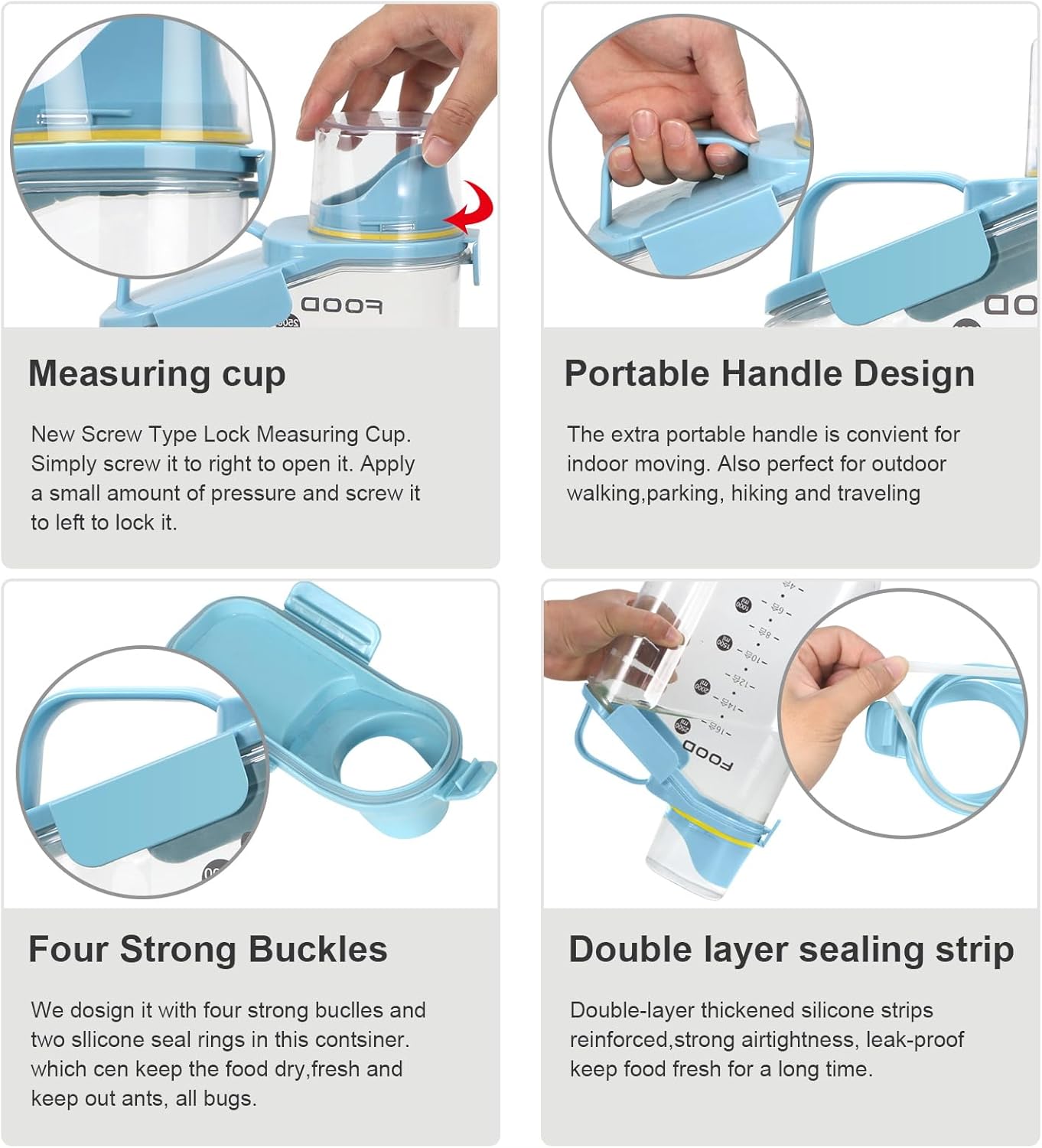 2Pack Cat Dog Food Storage Container Upgraded Large Nozzle BPA-free, 3-5 LBS Plastic Pet Food Storage Containers, With 4 Sealed Clasps, 1 Measuring Cup and Handle (Sunshine Blue)