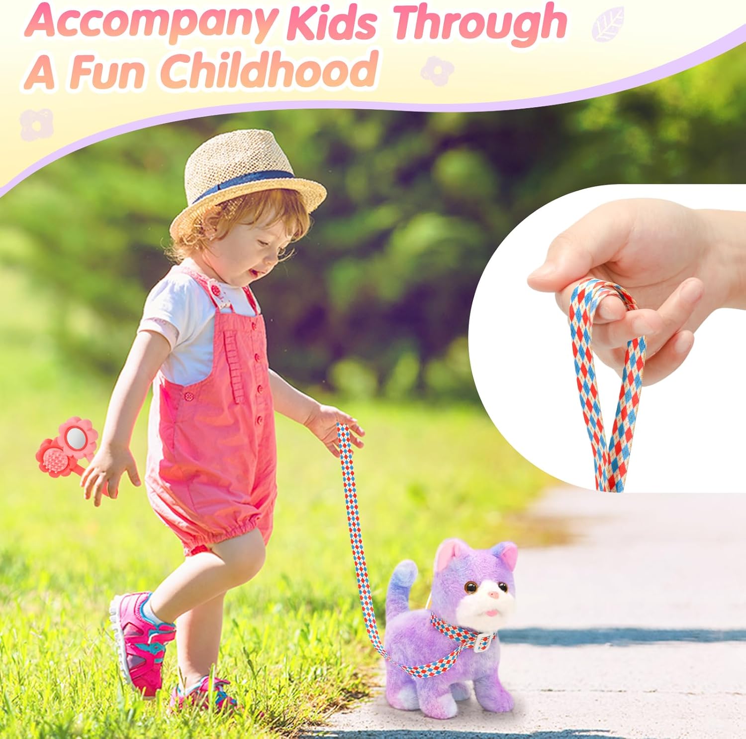 - Interactive Fun : This cat toys set comes with a leash, so children can take their plush companion for a walk, encouraging them to play outdoors, and also comes with accessories such as a comb mirror, which can give children imagination and interact with the Stuffed cat, allowing them to play for hours.