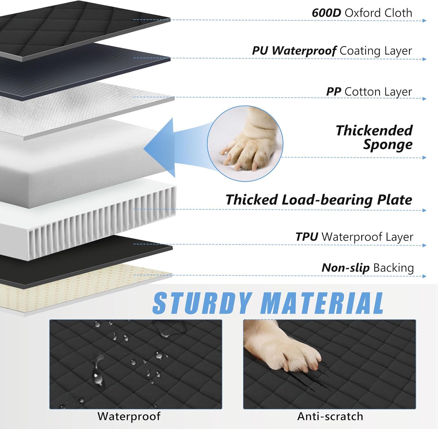 - HARD BOTTOM + SPONGE DESIGN, SOFT AND STABLE SUPPORT: Our pet seat covers for trucks is designed with a thickened hard bottom, the seat is completely flat and load bearing up to 420lbs. A soft sponge is added to ensure support while also being softer. Double waterproof design won't seep water, and there is anti-slip dot rubber on the bottom.
