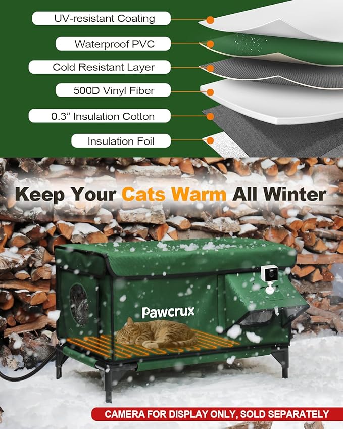 - ๐ช๐ฎ๐ฟ๐บ, ๐๐ป๐๐๐น๐ฎ๐๐ฒ๐ฑ, ๐ฎ๐ป๐ฑ ๐๐ผ๐๐: Our heated outdoor cat house ensures your kitty stays comfortably warm even in freezing temperatures. This outdoor heated cat house features aluminum foil insulation to keep your cat snug and cozy throughout the cold winter months.