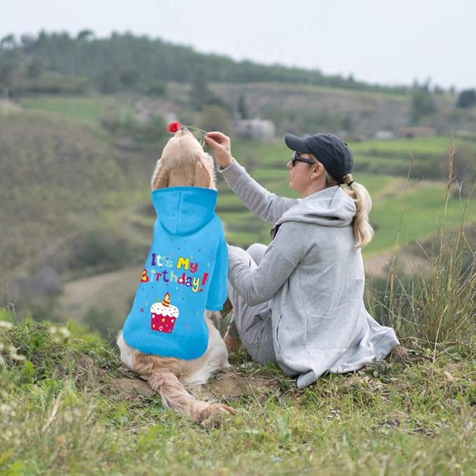 GreenJoy Dog Sweater Dog Hoodie Cold Weather Coat Hooded Sweatshirt for Puppies,Cats, Small Medium Large Dogs (Blue(It's My Birthday), XX-Large)