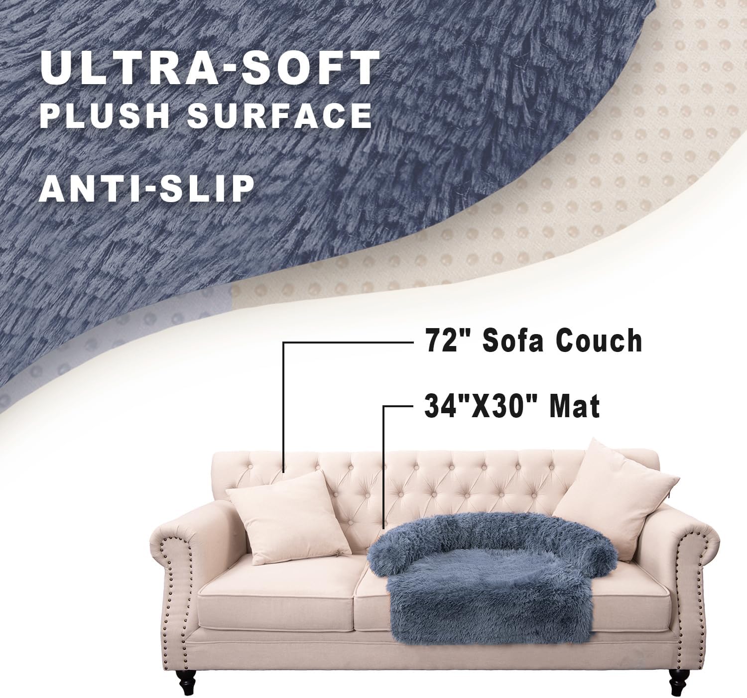 Calming Dogs/Cats Bed Mats, Dog Pad Washable Removable Couch Cover, Plush Long Fur Mat for Pets, Waterproof Lining, Perfect for Small, Medium and Large Dogs and Cats (Navy Blue, 34"x30")