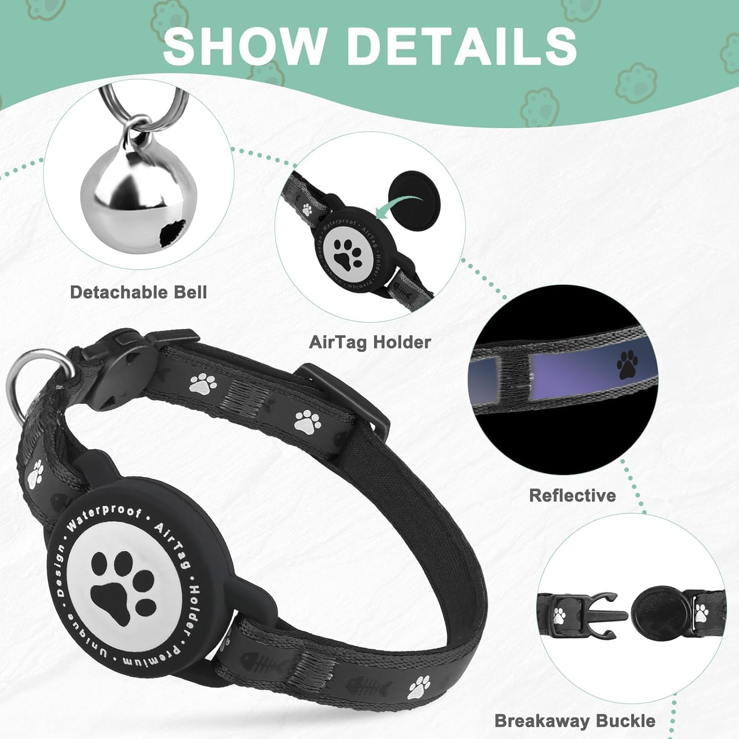 - [100% Satisfied Service] We provide you with 30 days Warranty and best After-Sales Service. If you have any questions about our gps cat collar, please feel free to contact us any time. Package Contents: 1* AirTag cat collar 2* Detachable bell
