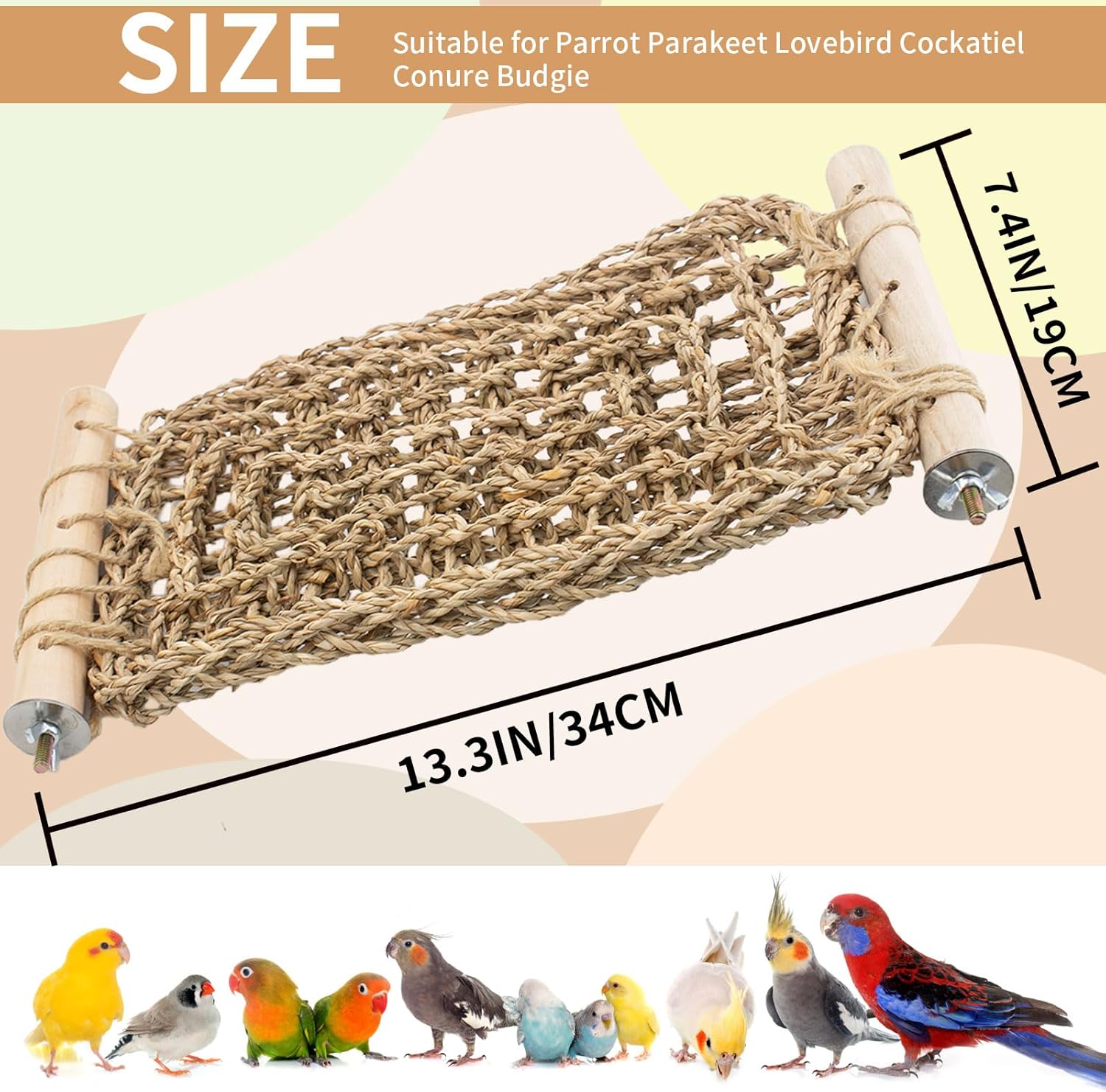 - 【Safe Material】: Bird seaweed woven net is made of natural seagrass material and wood perch, which is soft and comfortable, bite-resistant and stable. Seaweed material is very suitable for birds to chew and grind their beaks, which is safe for bird.