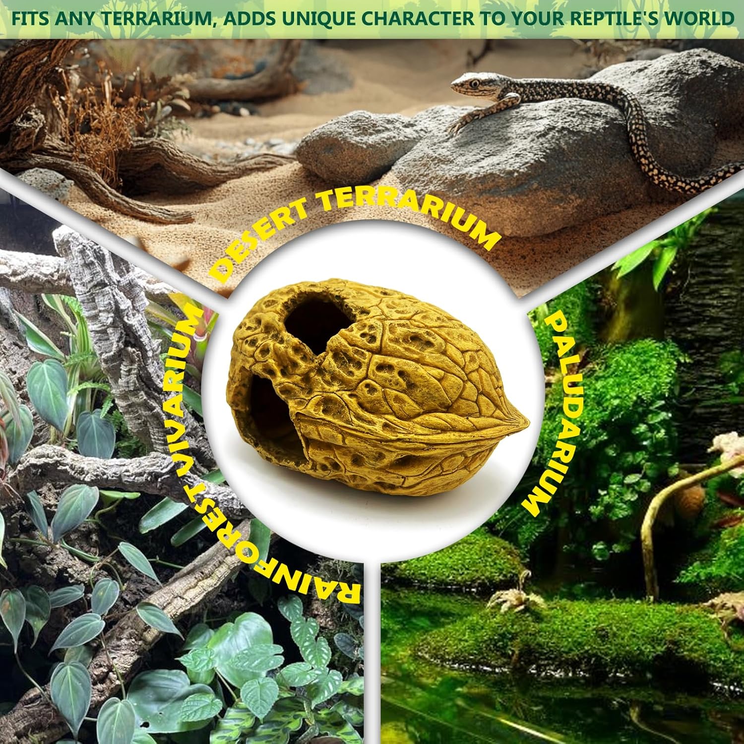- Unique Design & Practical Use: A walnut-shaped leopard gecko hide that adds fun to your terrarium while offering a secure shelter for reptiles