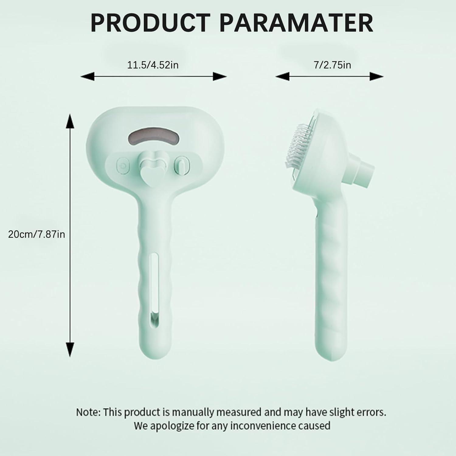 - 3.One-Click Self-Cleaning Design, Simplifies Cleanup: Unlike traditional brushes, this pet steam brush has a convenient one-click cleaning feature. After brushing, simply press the cleaning button on the back of the brush, and the fur will easily fall off the bristles, preventing hair from scattering everywhere. This makes cleaning effortless, helping you keep your pet’s grooming tool clean and hygienic with minimal hassle.